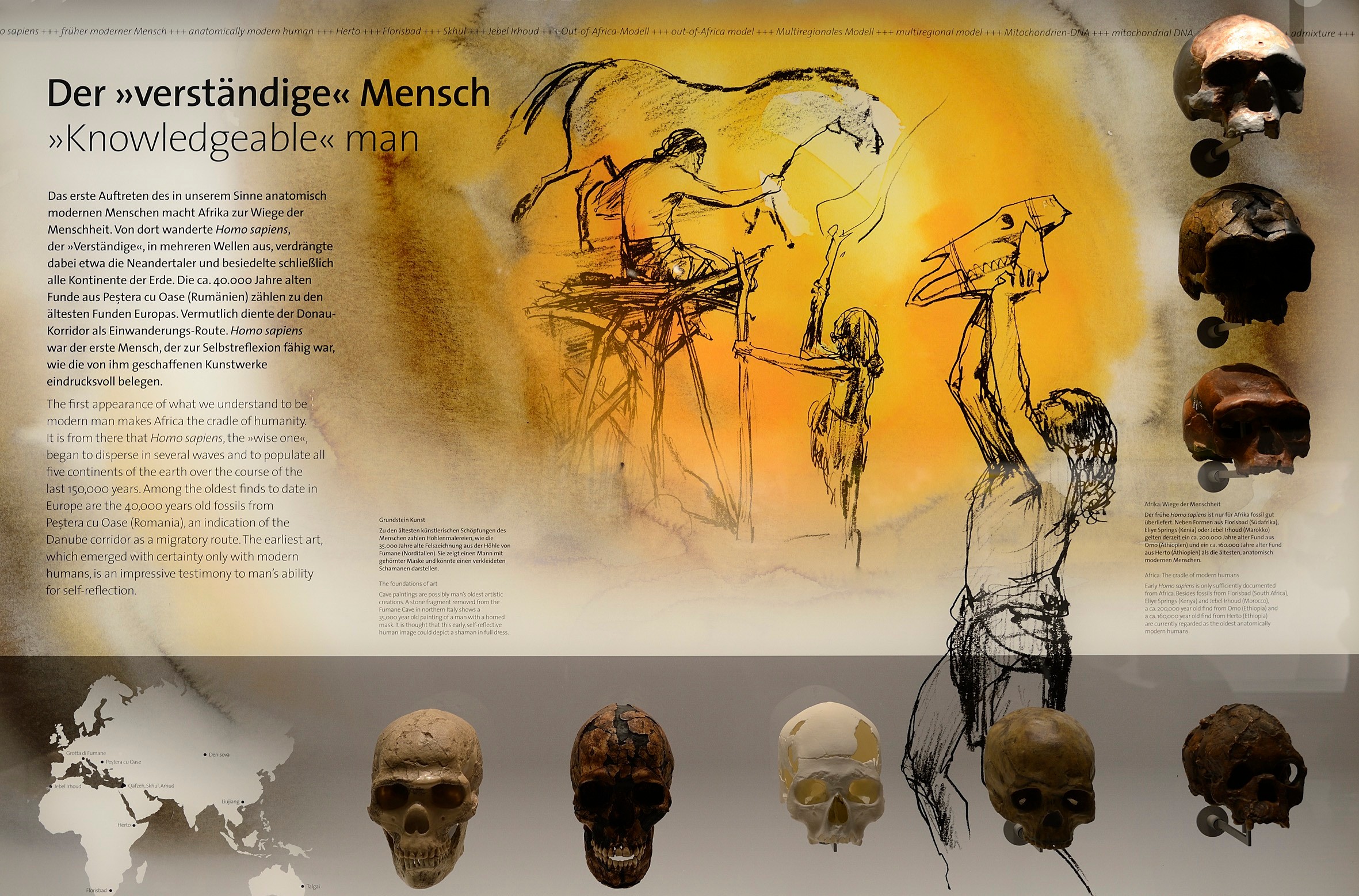 Auch die Tatsache, dass die Entstehung nicht nur als historischer biologischer Prozess gedacht werden darf, sondern dass auch die kulturelle Entwicklung als bedeutende Komponente zur Wirkung kam, spielte bei der inhaltlichen Konzeptentwicklung der neuen Dauerausstellung eine große Rolle.