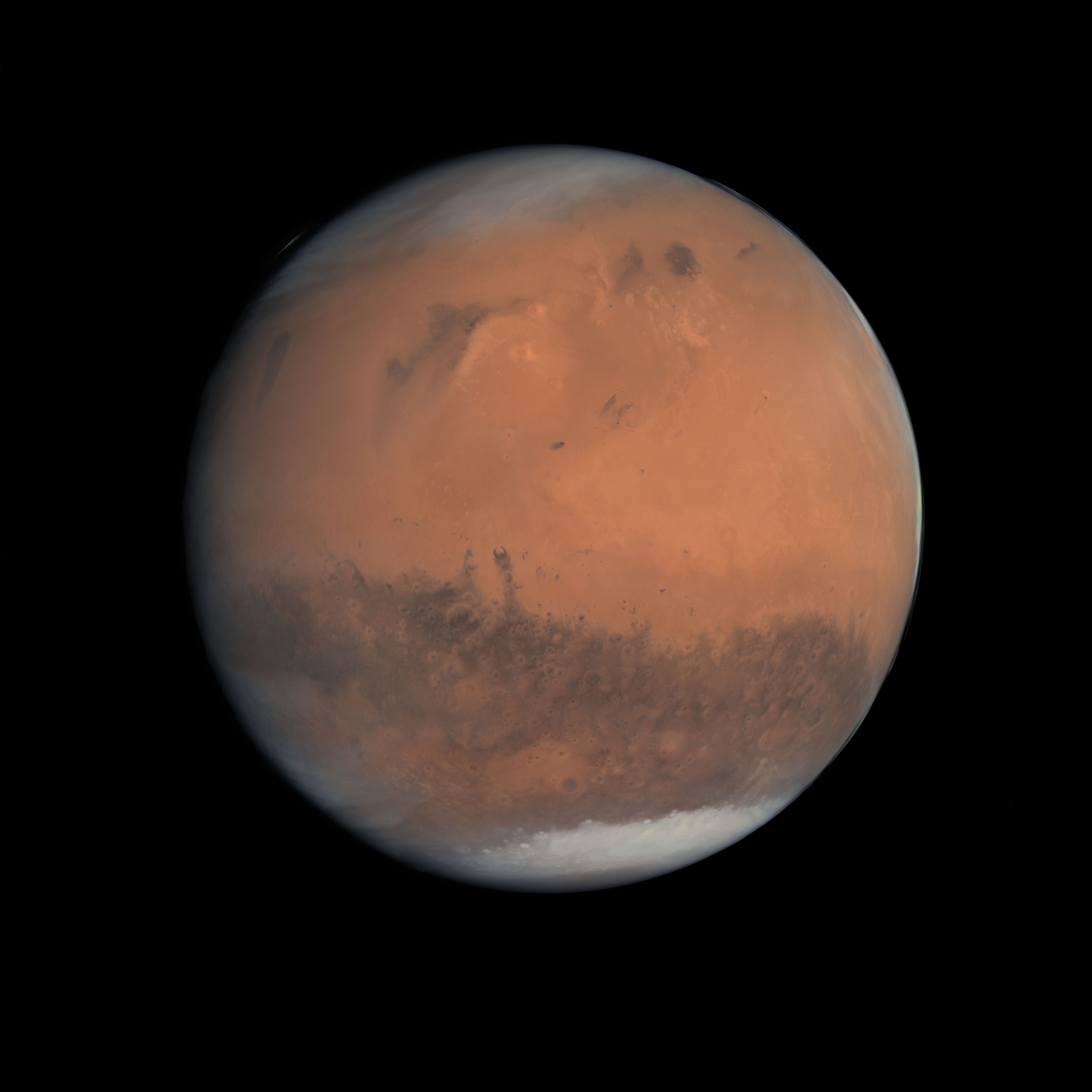 © Michael Benson, Kinetikon PicturesMars aus der Perspektive der Weltraumsonde Rosetta, die auf ihrer Jagd nach Kometen am Planeten vorbeiflog. In der dünnen Atmosphäre des Planeten sind Wolken erkennbar, einige davon in extremer Höhe oberhalb des geschwungenen Horizonts (oben links und rechts).