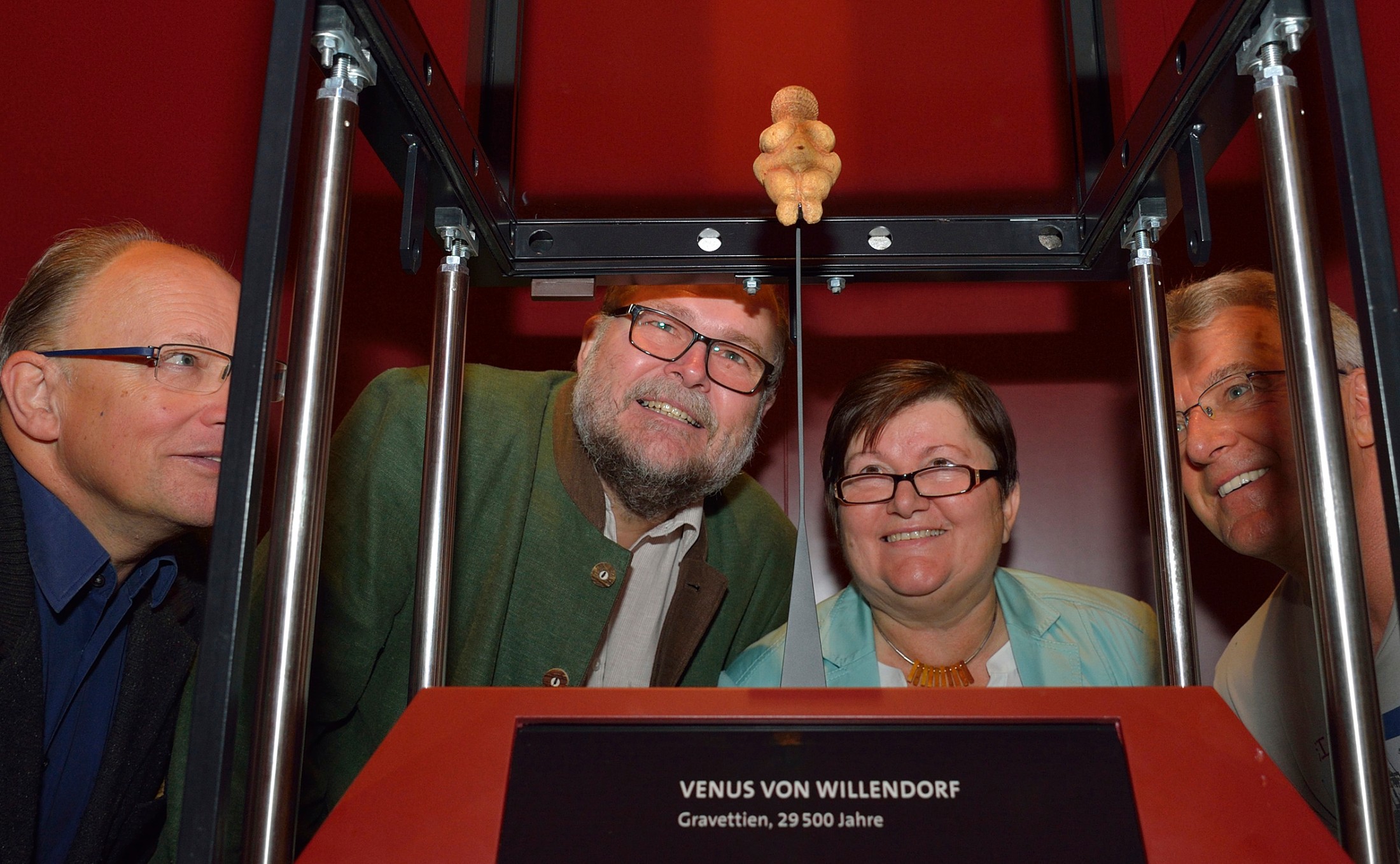 (v.l.n.r.) Dr. Reinhard Golebioswki, Dr. Anton Kern, Venus von Willendorf, Dr. Walpurga Antl-Weiser, Walter Prenner