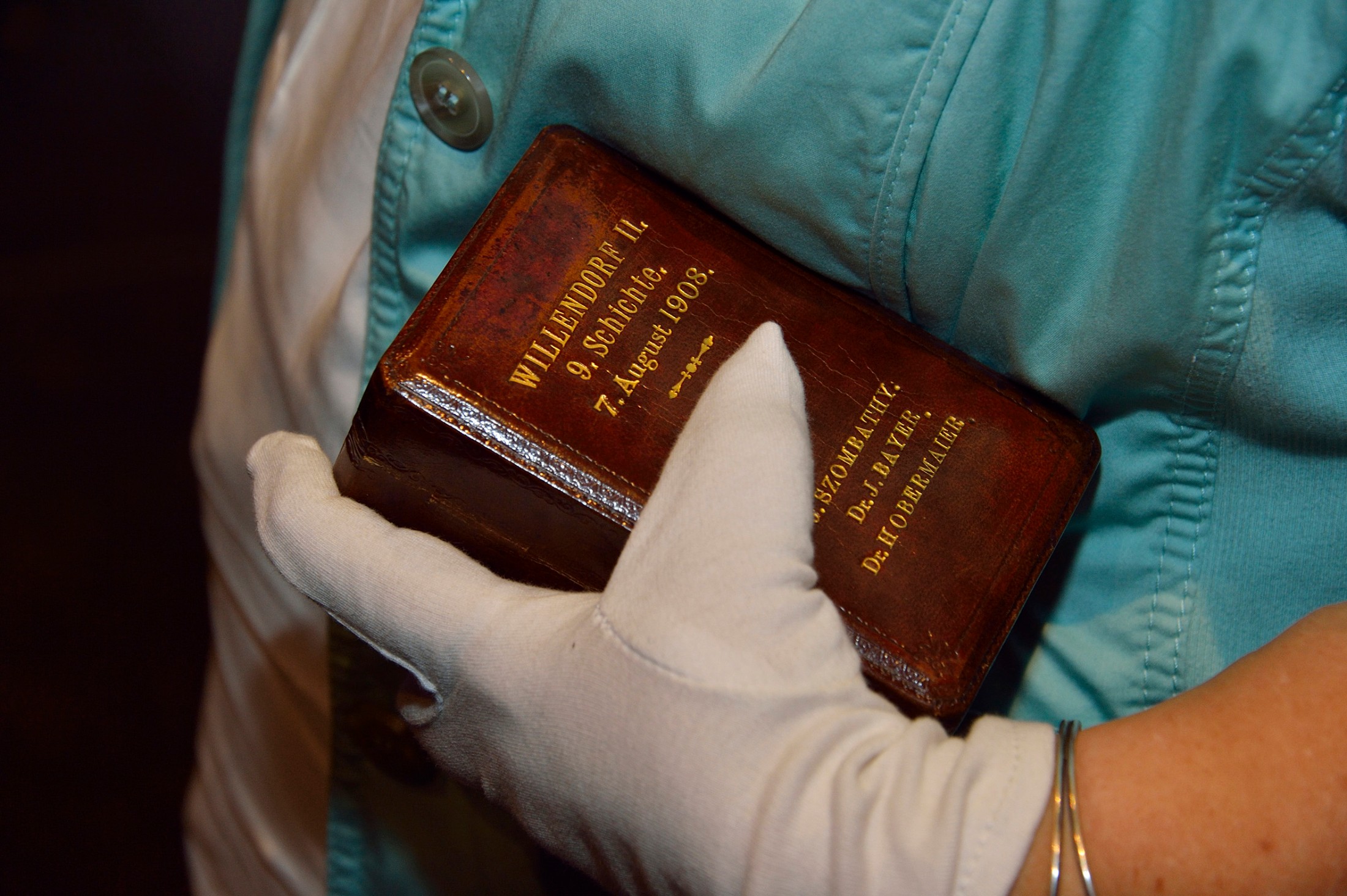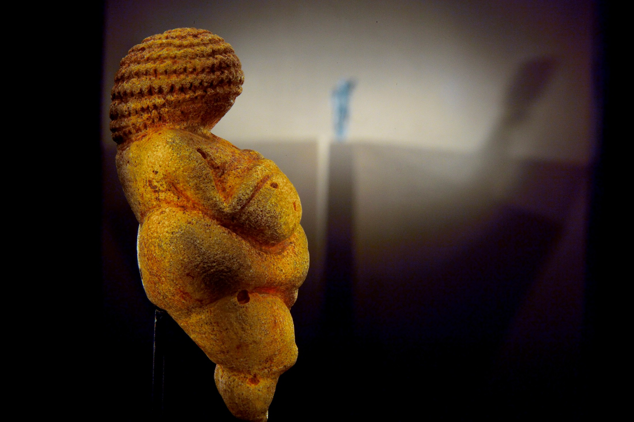 Walter Prenner legt die Venus von Willendorf in ihre neue Vitrine