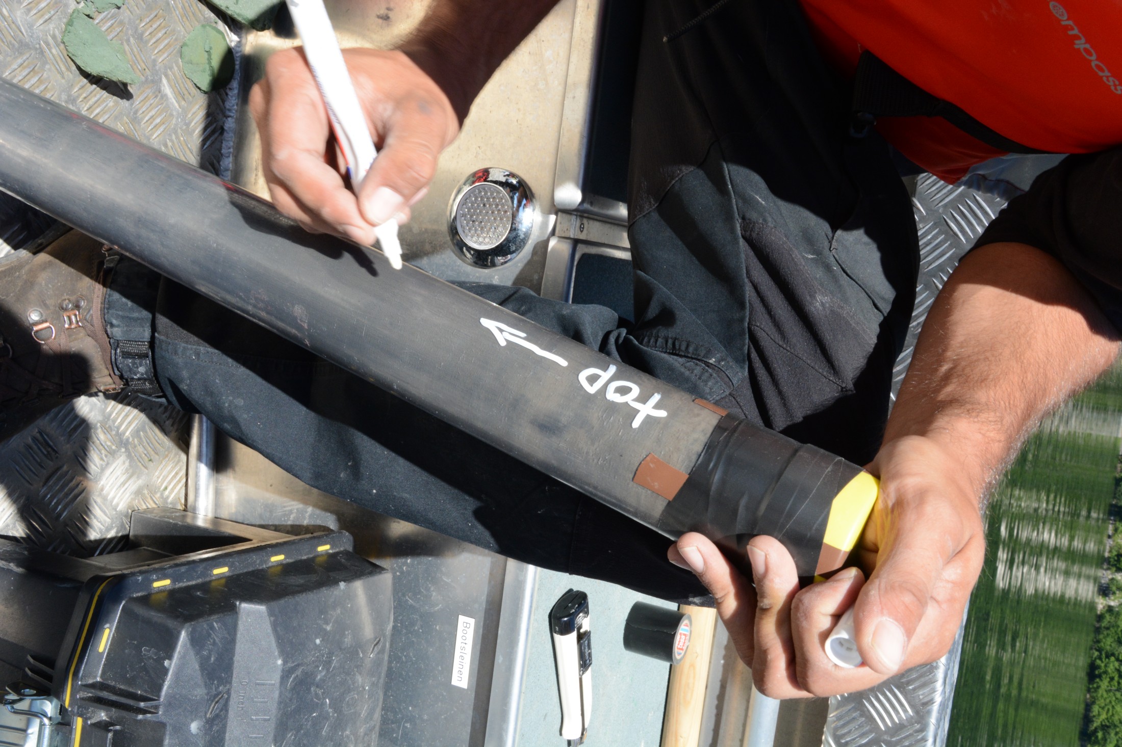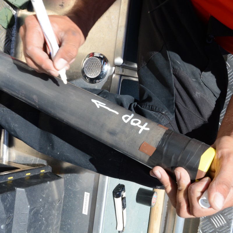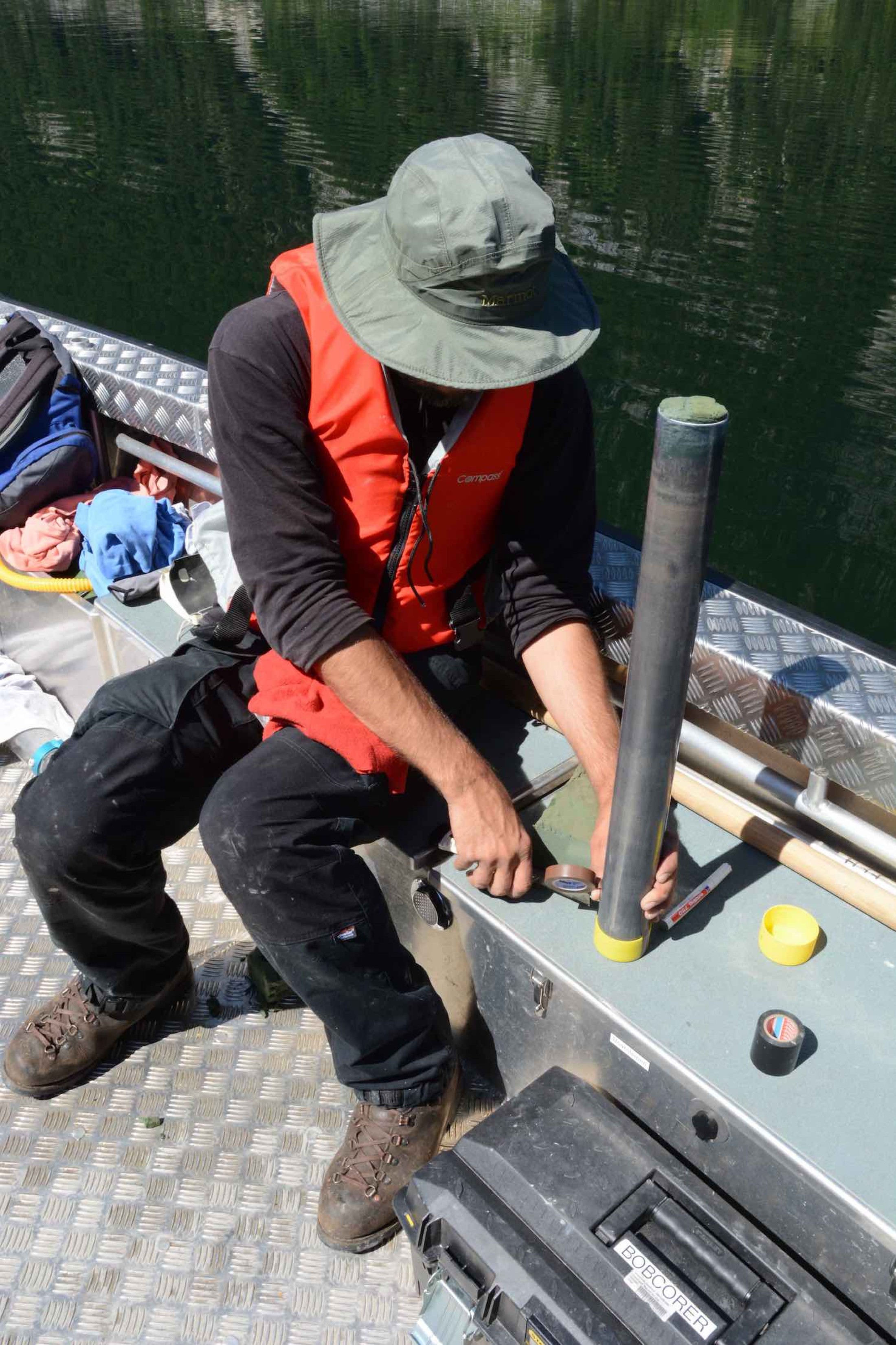 Stefano Fabbri und Flavio Anselmetti von der Universität Bern nehmen letzte Anpassungen vor.