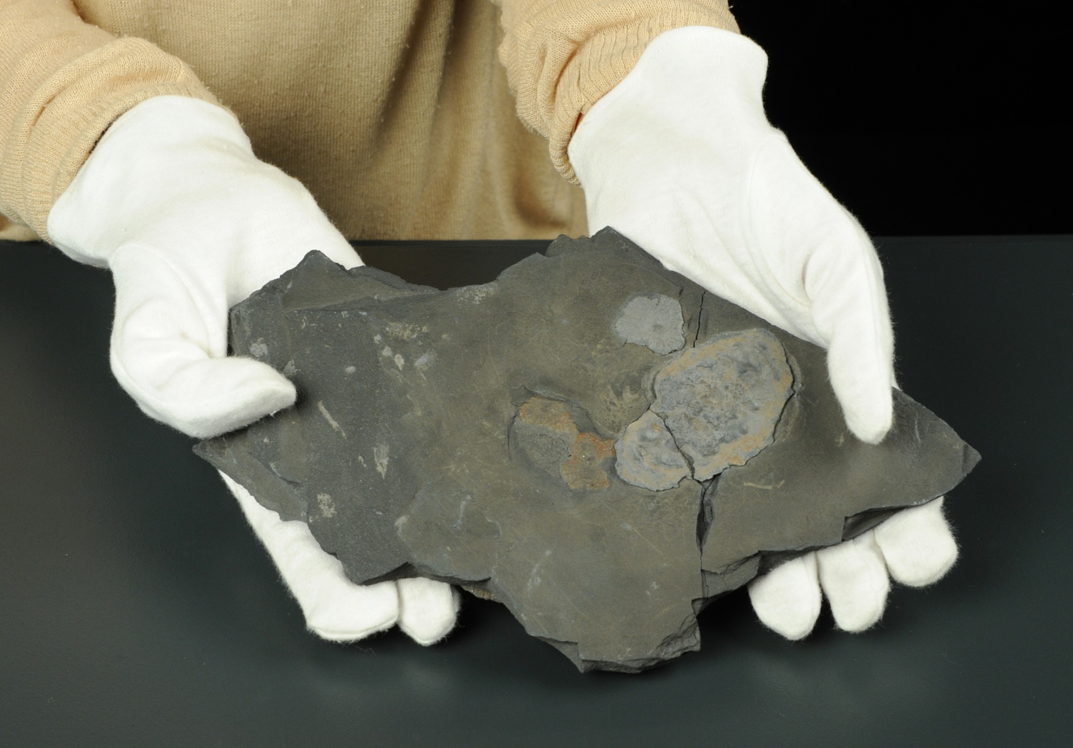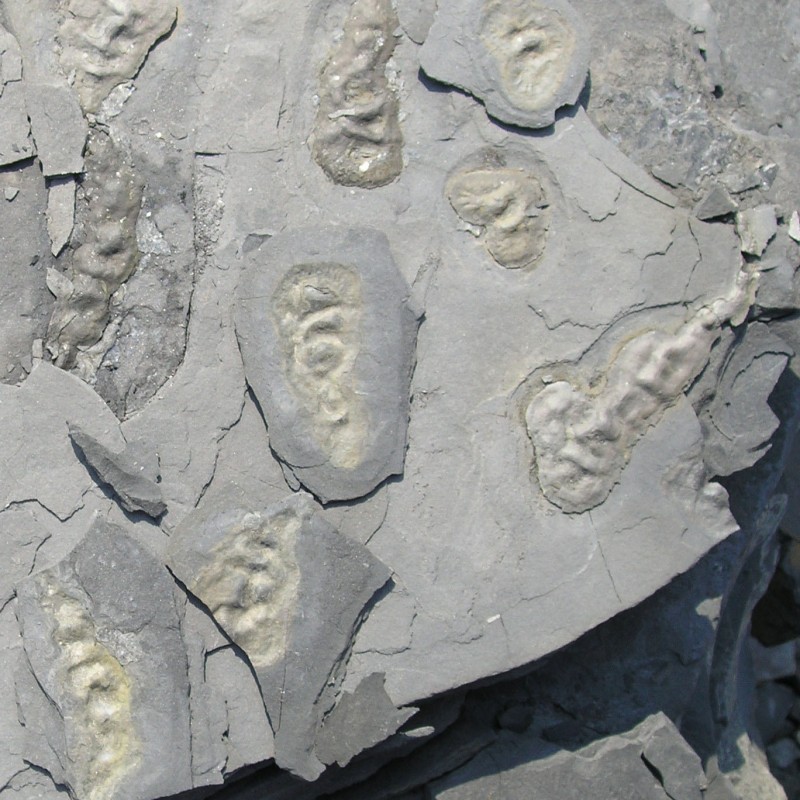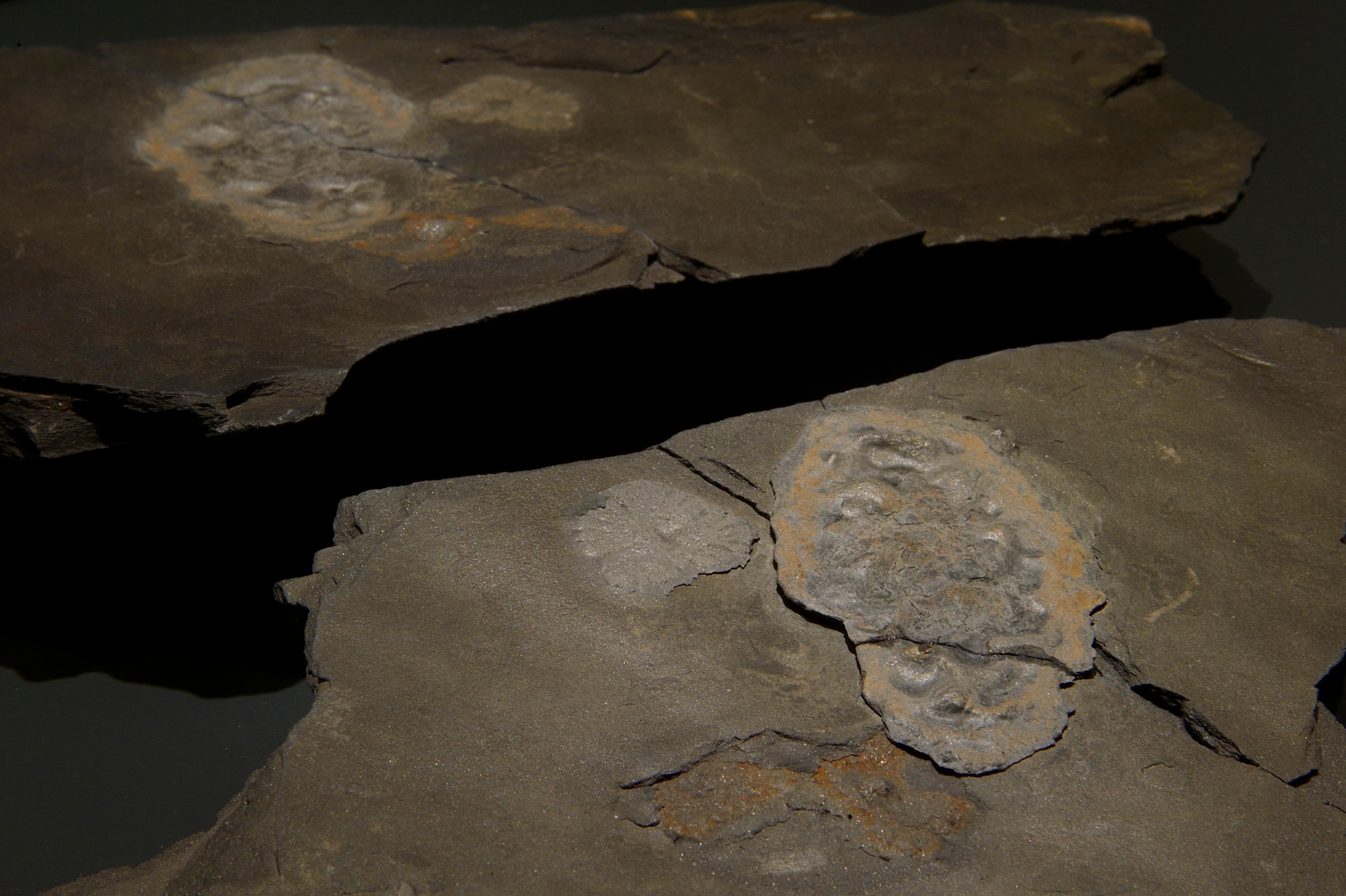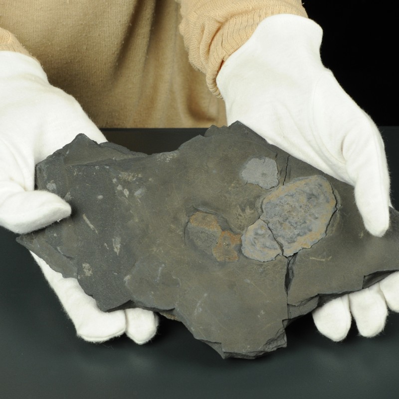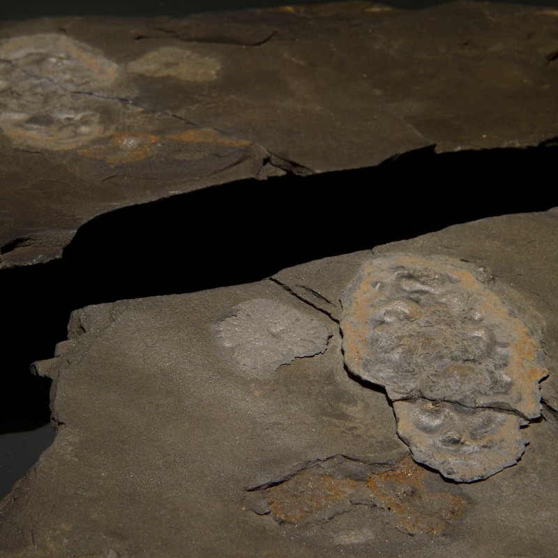 The fossils were collected from black shales that were once deposited in coastal environments of a shallow sea. Many slabs yield numerous fossils in-situ with densities of up to 40 specimens per m2.[8] Apparently, the Gabonionta lived in dense colonies on the sediment-surface of a shallow sea with oxygenated water. Now, the organisms are preserved as print and counter-print in pyrite and iron oxides. This preservation allowed El Albani’s team to exclude that the fossils are abiogenic structures. Mass-spectrometry analyses of the sulfur isotopes revealed depleted δ34S values in pyrite crystals within the fossils. This signature points to early pyritization of the organic remnants by sulphate-reducing bacteria. A further proof is the isotopic composition of the organic carbon within the fossils, which differs from that of the host rock.[8]