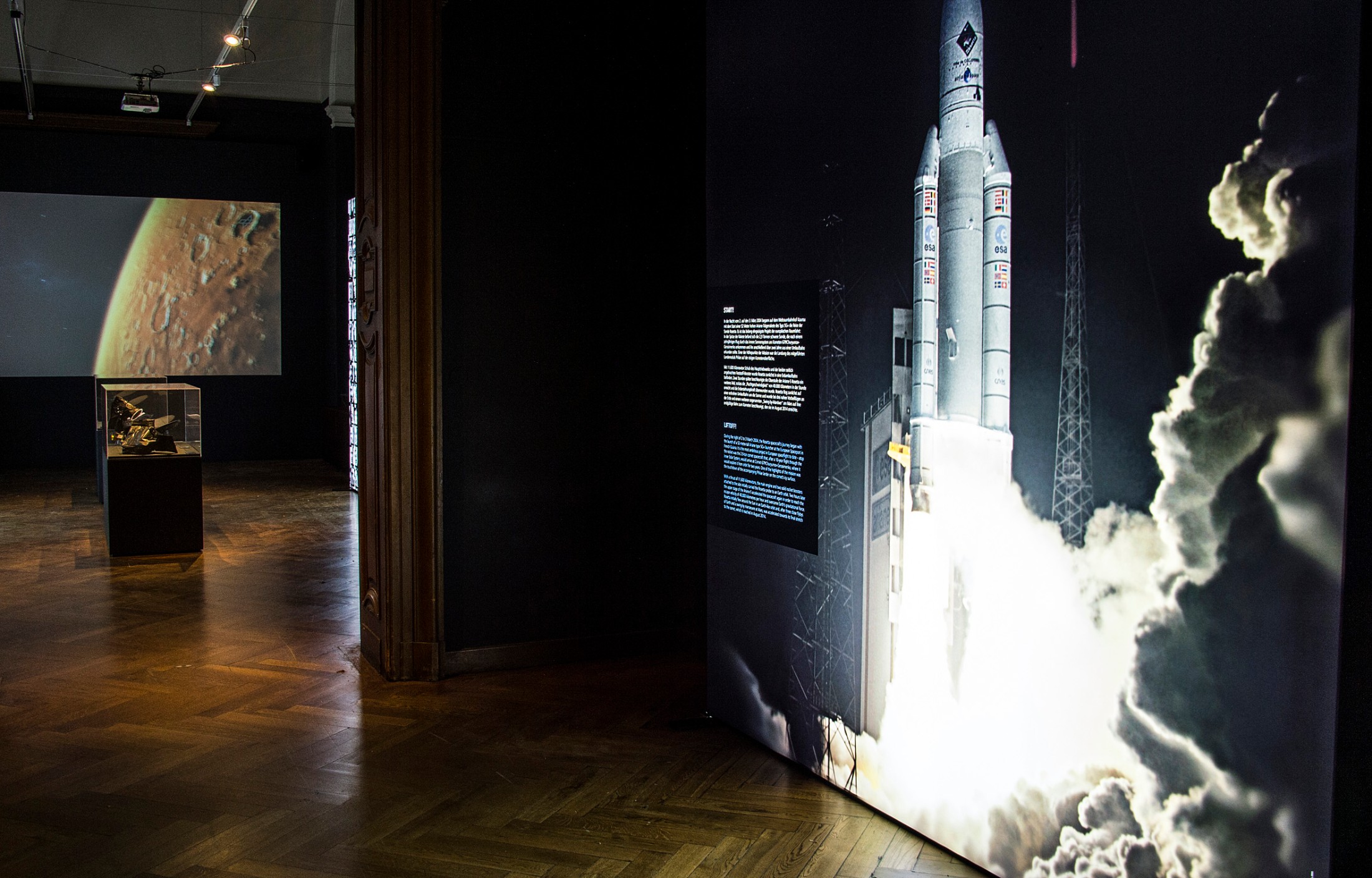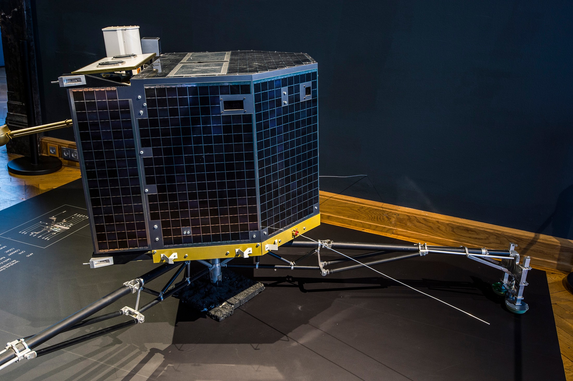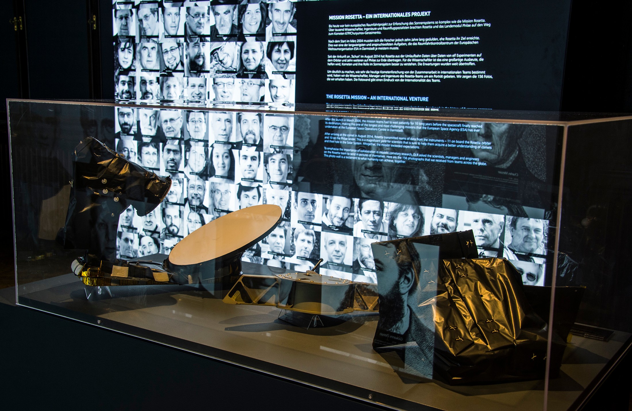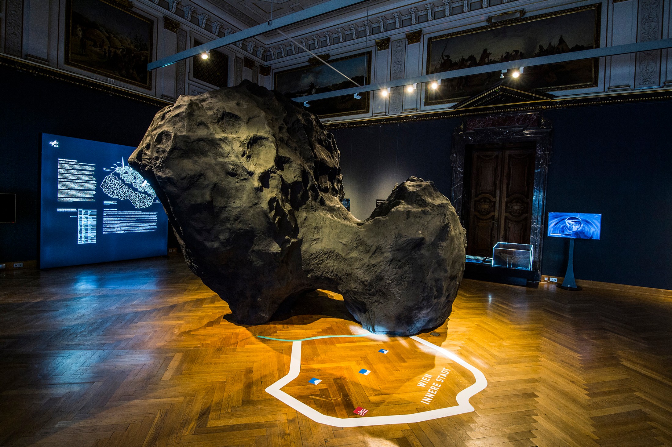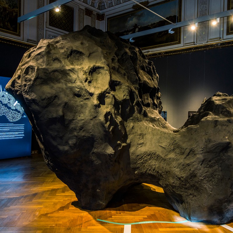 The international mission began on 2 March 2004. The journey through space, including close flybys of Earth and Mars in order to pick up momentum, took a total of ten years before the probe and lander finally reached comet 67P/Churyumov-Gerasimenko on 6 August 2014. Just a few months later, on 12 November 2014, Philae became the first lander to touch down on a comet. The exhibition documents the whole incredible mission. Highlights include a 1:5 model of the Rosetta space probe and a life-size model of the Philae lander. A 4.3 m by 3.6 m model (1:1000) of the Churyumov-Gerasimenko comet is shown on top of a map of Vienna in order to give visitors a sense of size.