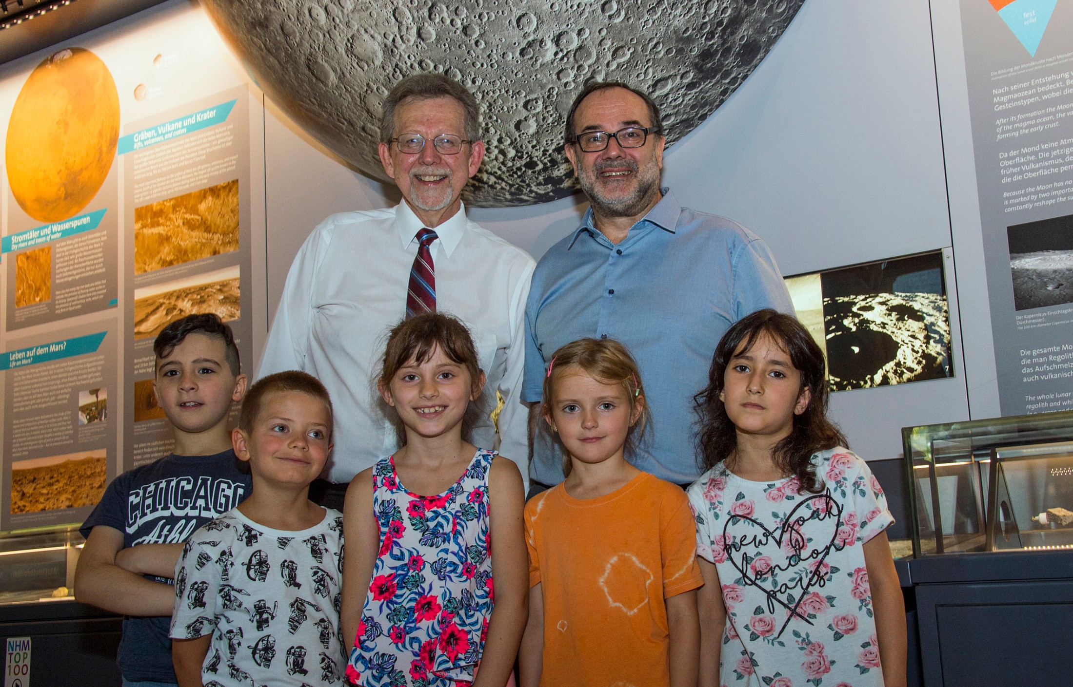 Jim Green (NASA) mit Christian Köberl (Generaldirektor NHM Wien) und SchülerInnen