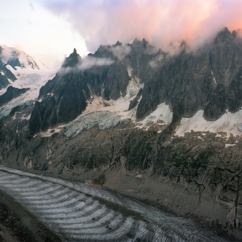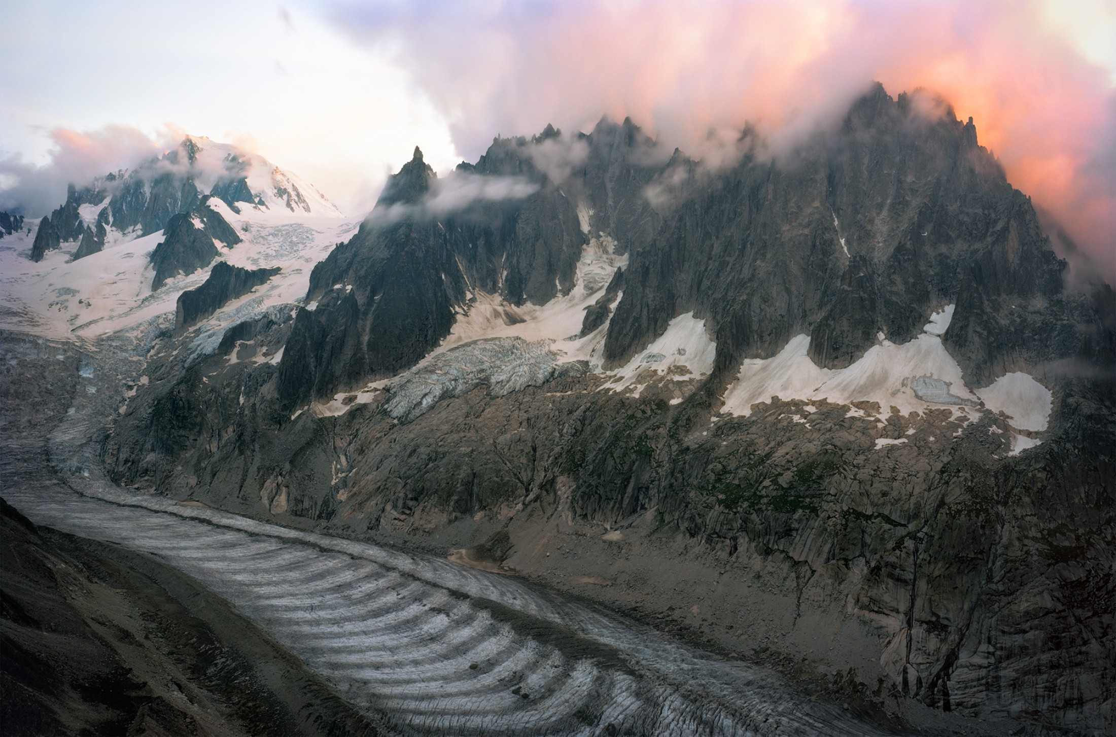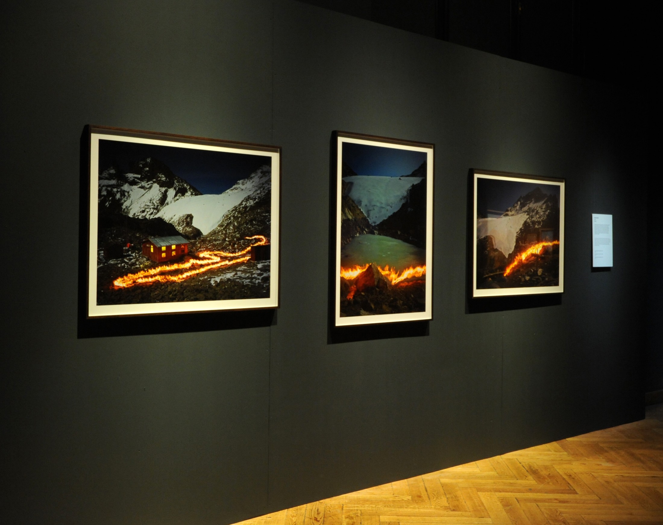 MELTDOWN has work from every relevant continent on the planet and leads the viewer on a journey in three chapters. The first section, The Importance of Glaciers, provides an introduction to the subject. We learn how year-on-year comparative images illustrate glacier mass loss and the impact of climate change. Artist Peter Funch uses vintage postcards as a model for his images of American glaciers to capture the effects of glacial recession. These effects are highlighted through his use of RGB tricolor separation. Through his representation of the landscape, Funch aims to address human influence on nature.