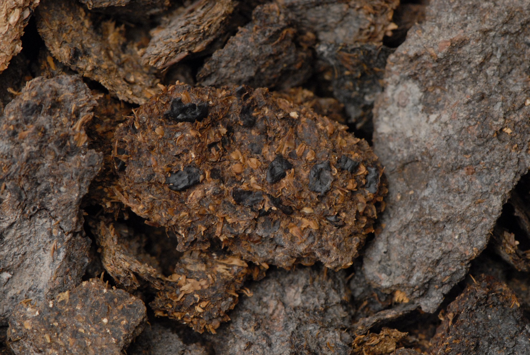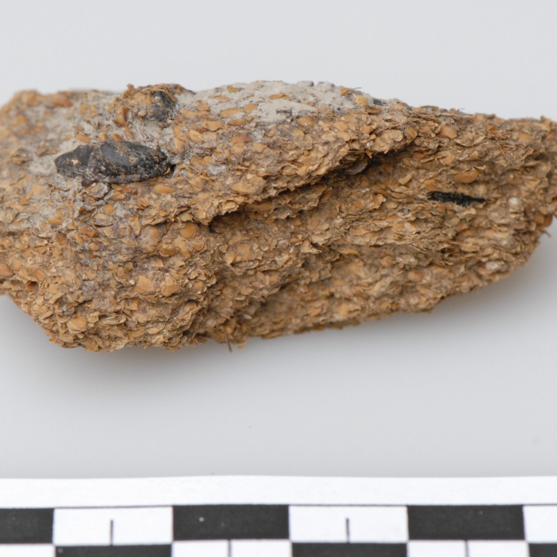 2.600 Jahre altes menschliches Exkrement aus den eisenzeitlichen Salzbergwerken von Hallstatt. Bohnen, Hirse- und Gerstenkörner
