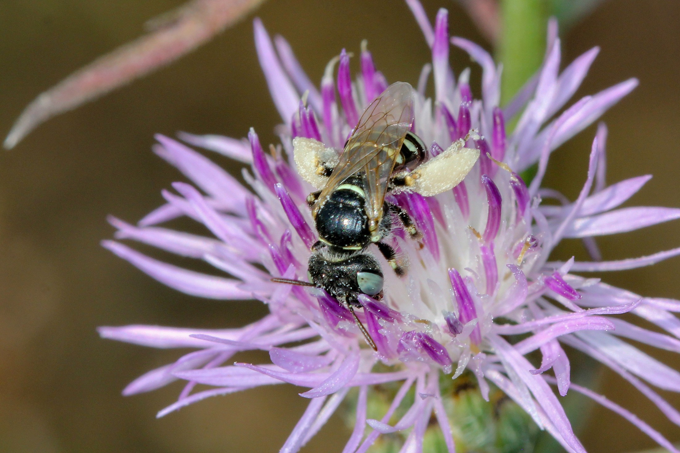 Camptopoeum frontale, which is only known from the Pannonian region, is one of these very rare species. Only very few specimens of it have ever been recorded in Vienna. This bee needs the pollen of thistles and knapweeds (Carduoideae) to rear its offspring. It nests in barren or sparsely overgrown loess or sandy soils and requires a habitat that is dry and warm.
