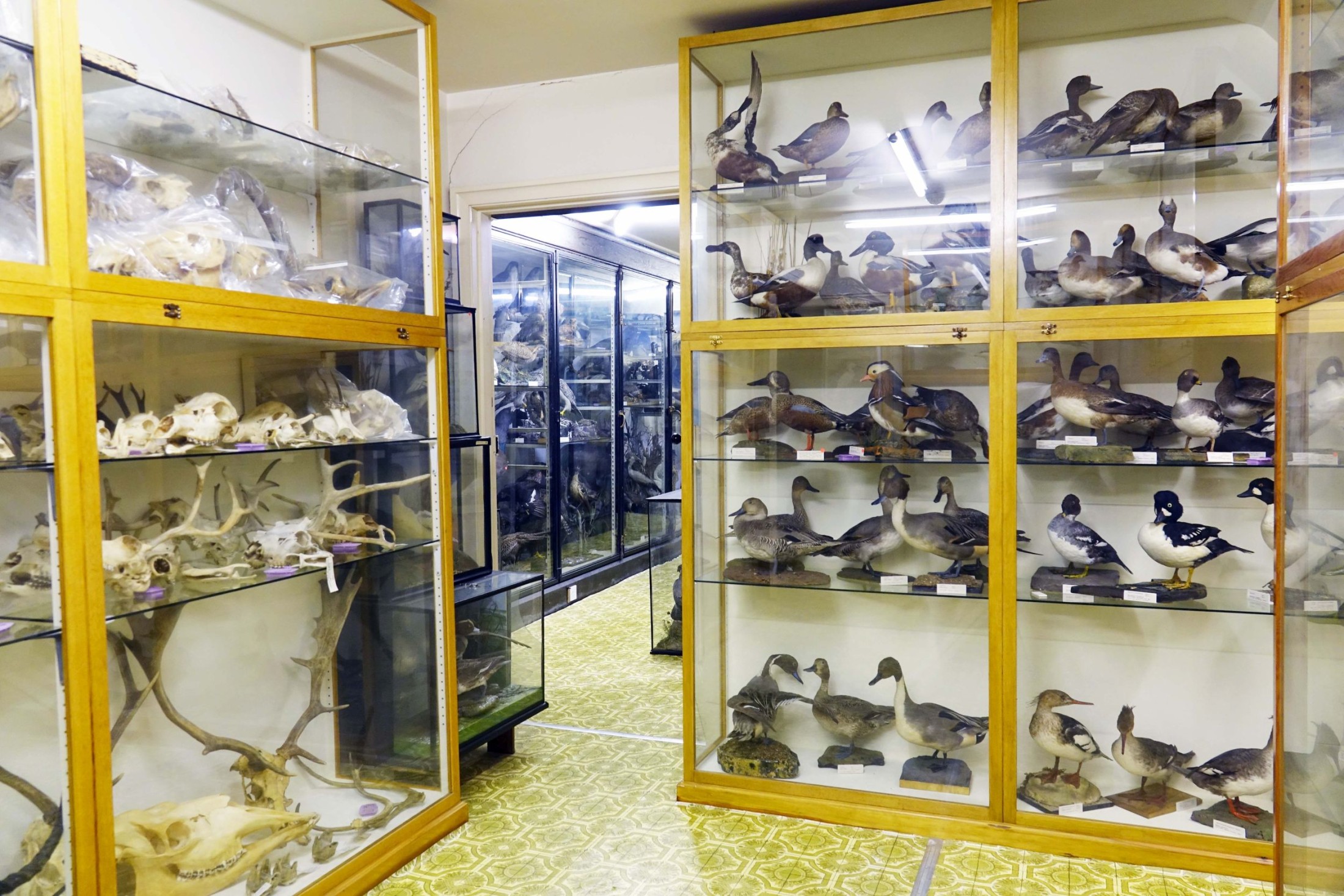 The scientific bird collection comprises about 130,000 items and consists of the skins collection with 95,000 items, roughly 10,000 mounts, a skeleton collection (11,000 items), an egg collection (about 10,000 clutches), about 2,500 tissue samples, a collection of nests (1,000 items) and about 4,500 so-called “feather sheets”, which are sheets of paper on which individual feathers are arranged in a standardised format.