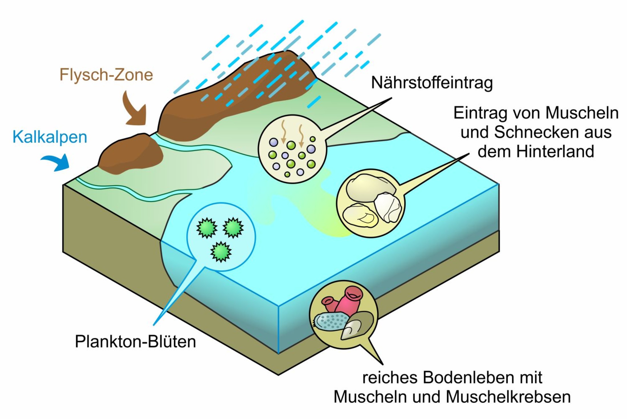 Redeposited nannofossils (smaller than three hundredths of a millimetre) from the flysch zone dominate in the upper part of the core and allow comparisons to be drawn with a river similar to today's Wien river, which originates in the flysch zone. A coarser horizon (extended clay or rock layer) at a depth of 30.7 metres can also be clearly assigned to the flysch zone.