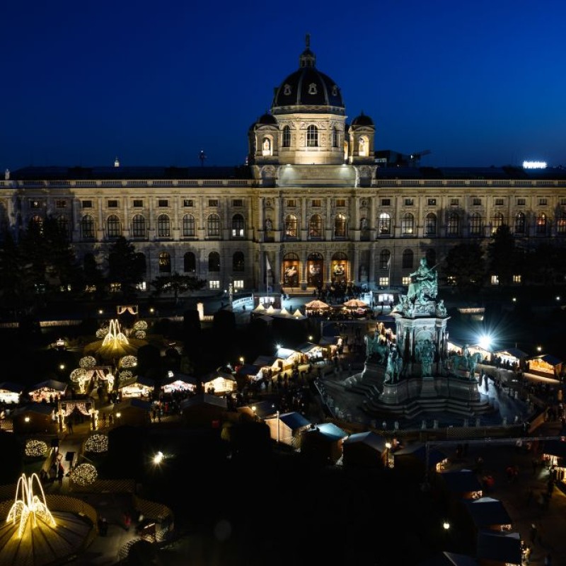 Führung "Punsch am Dach" mit Blick auf den weihnachtlichen Maria Theresien-Platz.