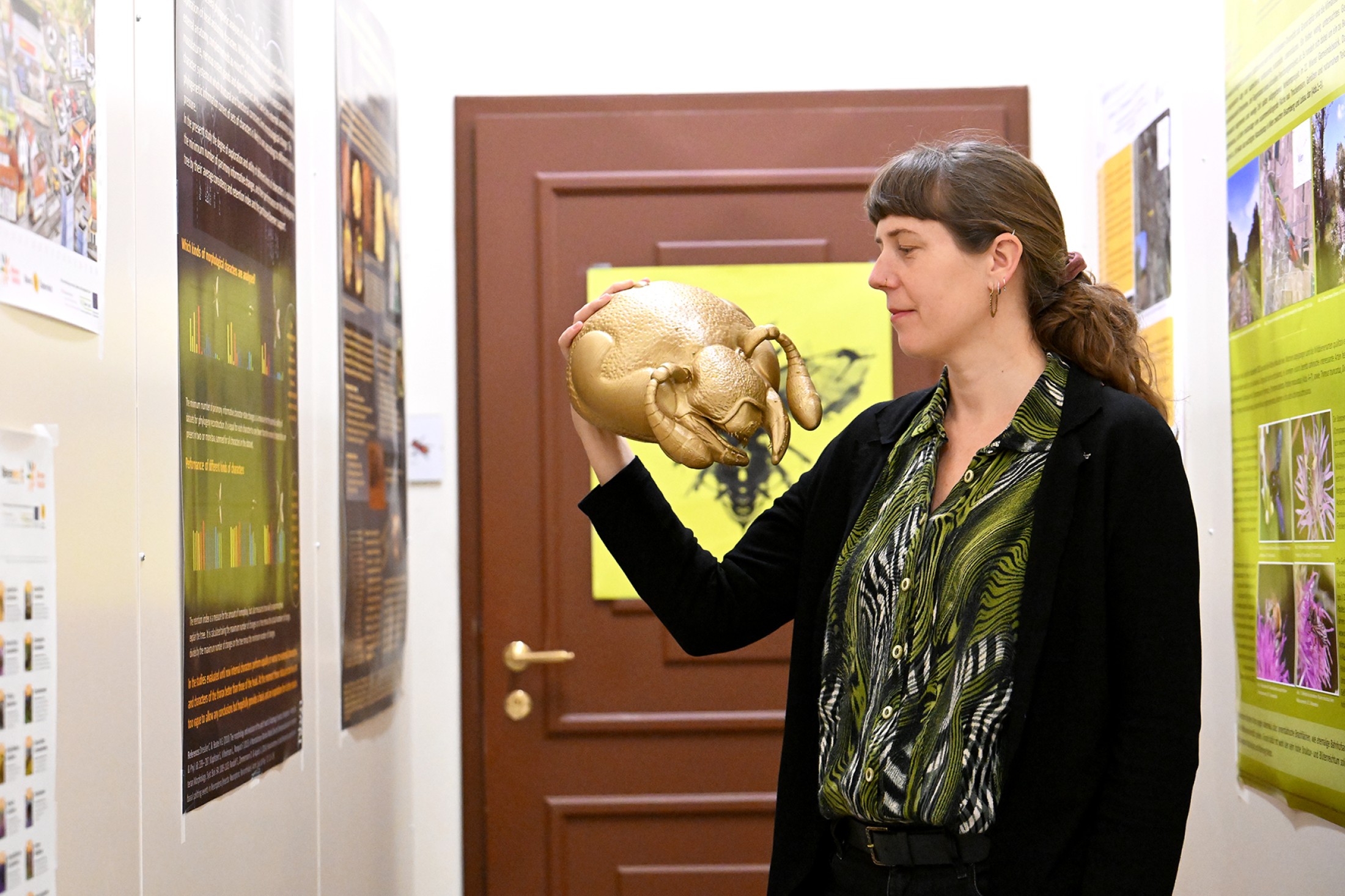 Dominique Zimmermann, born in Vienna in 1981, is an entomologist and curator at the Natural History Museum in Vienna. Her research focusses on wild bees and other stinging insects, in particular the decline in species and its causes. She also teaches at the University of Vienna. Zimmermann is co-author of the Insect Manifesto, which will be immortalised in 13 floor slabs in front of the University of Natural Resources and Life Sciences in 2023 as part of the "Walk of Insects" artwork by Austrian artist Edgar Honetschläger. Science communication is a particular concern of hers, which she pursues as a board member of the GoBugsGo association, among other things.