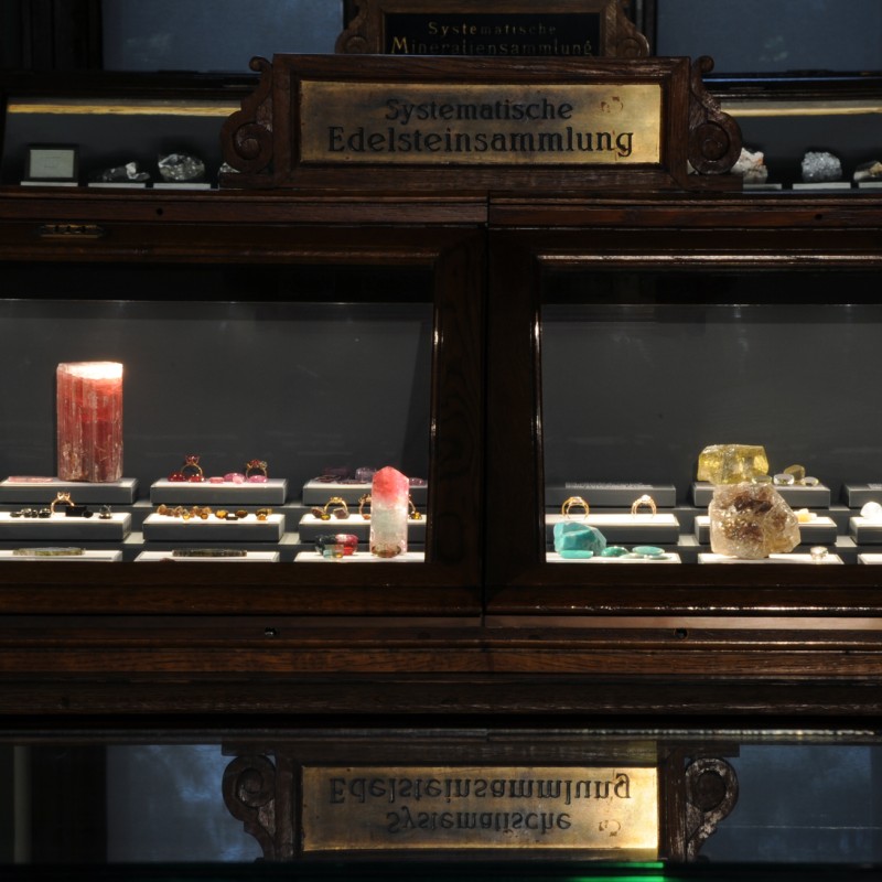 Die Edelsteinsammlung im NHM Wien gehört zu den historisch bedeutendsten in Europa. Manche Objekte waren bereits vor Mitte des 18. Jahrhunderts vorhanden, wie etwa ein großer Anhänger mit Citrin aus der Wiener Schatzkammer oder Mirabilien der Ambraser Kunst- und Wunderkammer von Ferdinand II. von Tirol (1529-1595) aus dem 16. Jahrhundert.