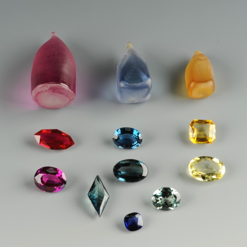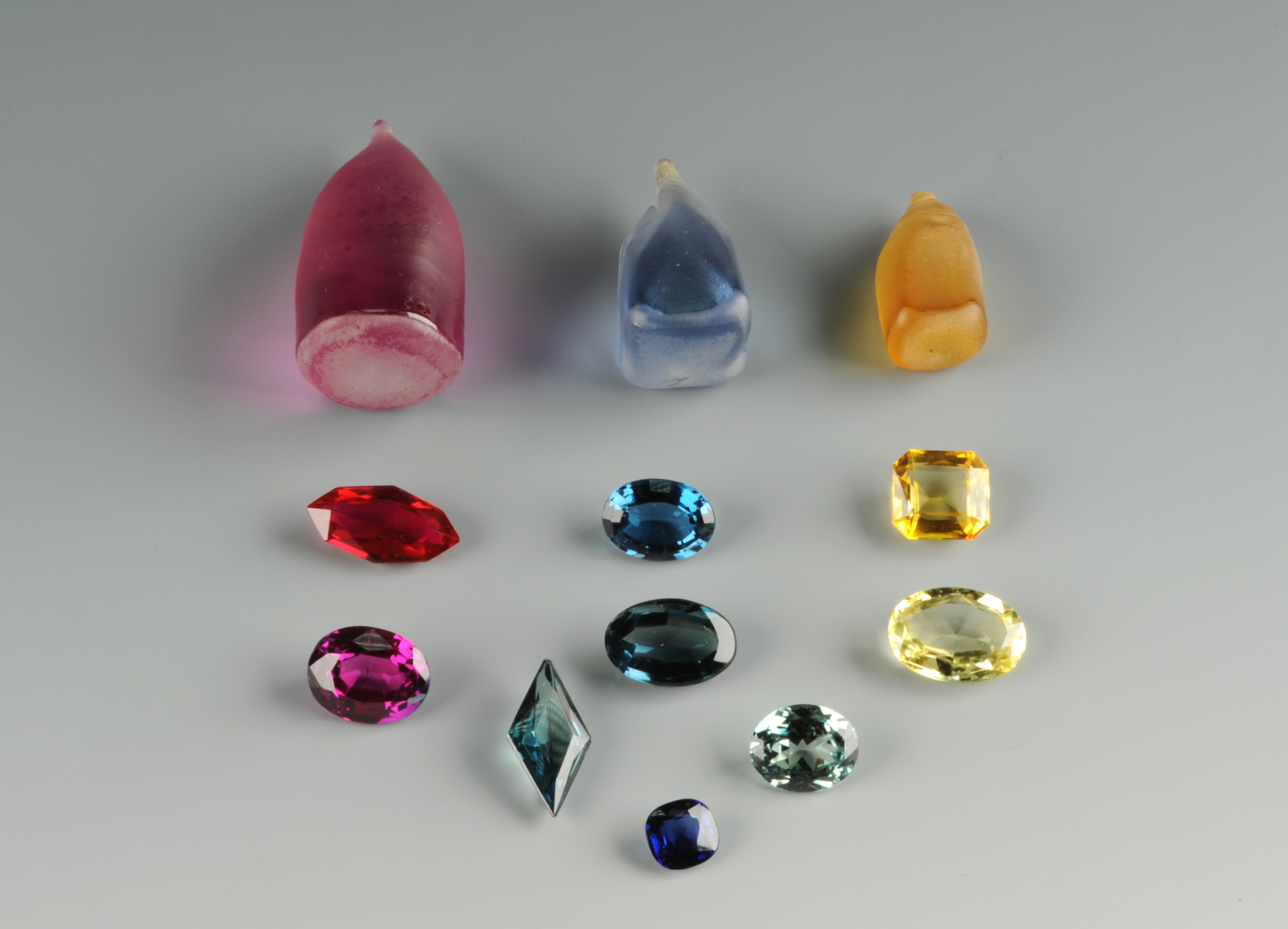Synthethische Korunde, Erfinder A. Verneuil, Frankreich. Produktion seit