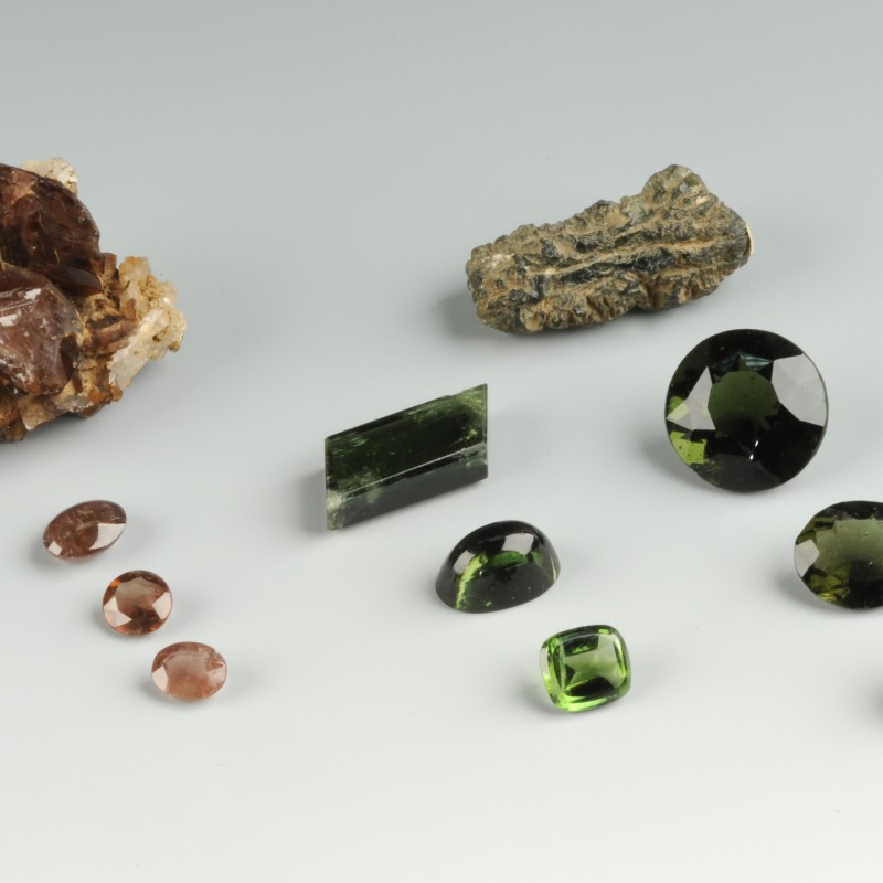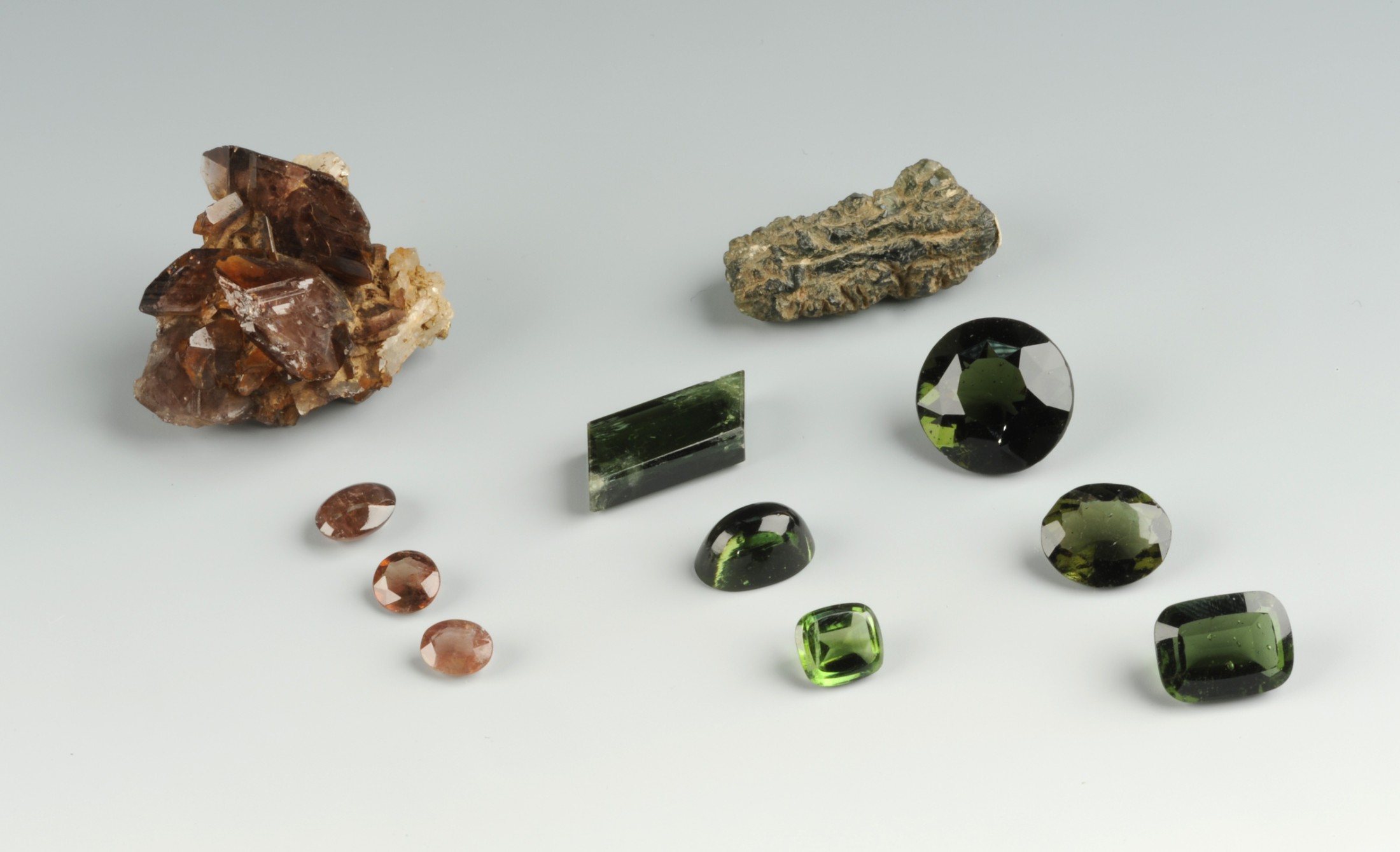 Axinit, Diopsid, Moldavit aus der Sammlung Loehr.