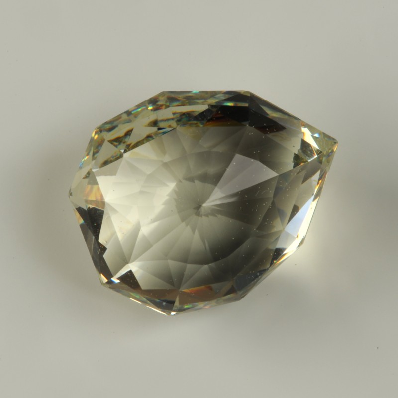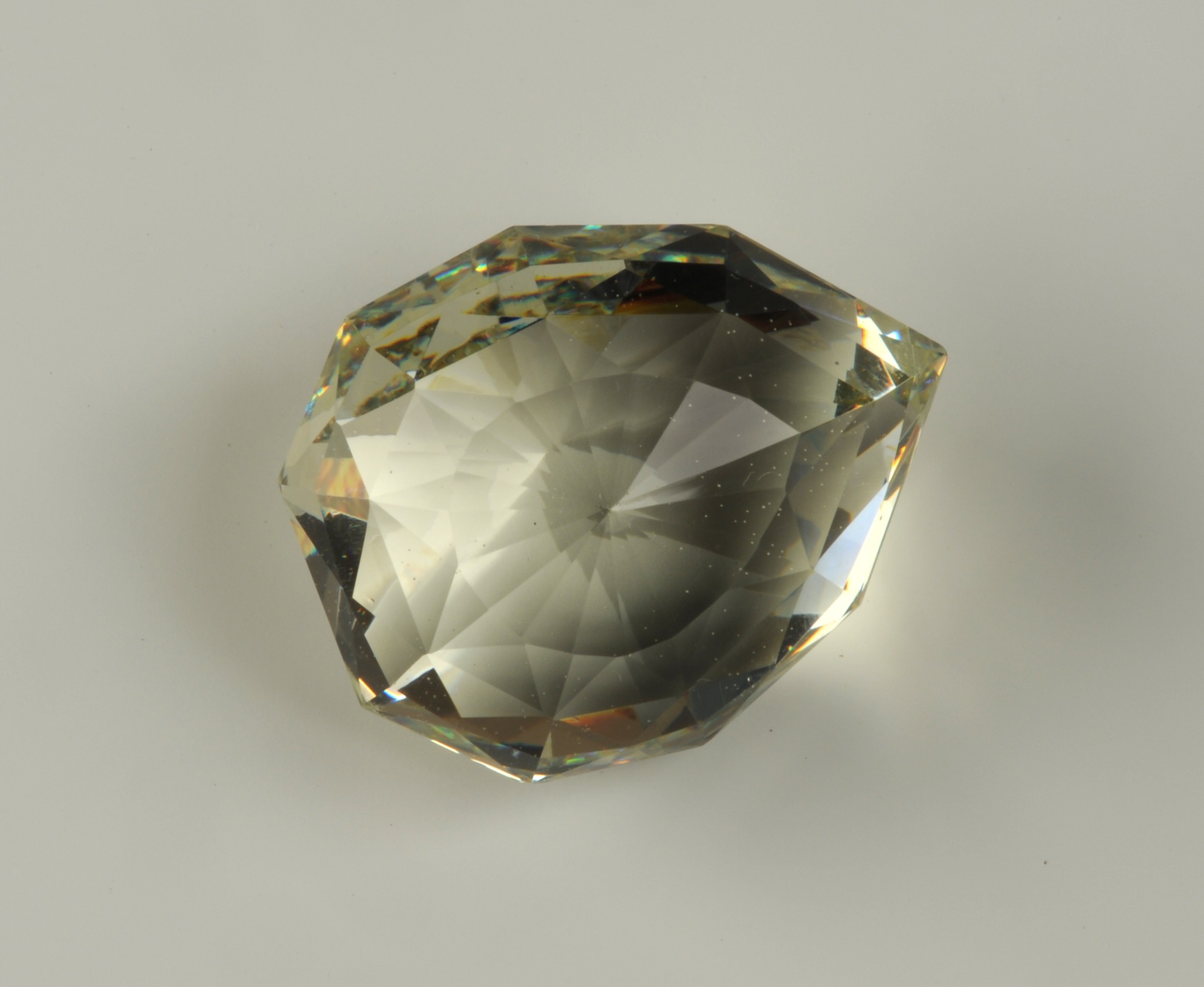 Dieser große Tropfenschliff wurde in der Werkstätte des berühmten Goldschmieds Peter Carl Fabergé gefertigt. Er ist ganz mit rautenförmigen Facetten überzogen und stammt aus dem Besitz des russischen Zaren Nikolaus II.