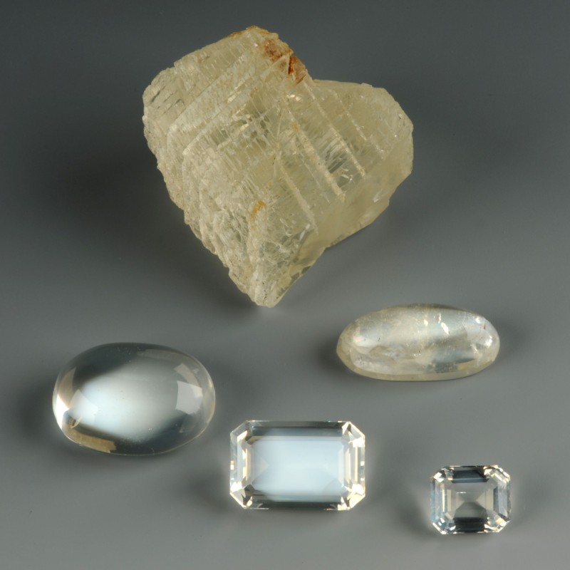 Mondstein besteht aus zwei unterschiedlichen Feldspäten, die in feinsten parallelen Spindeln gewachsen sind und das Licht diffus streuen. Dies führt zu einem milchigen Schimmer, den man als Adulareszenz bezeichnet.