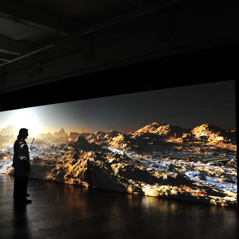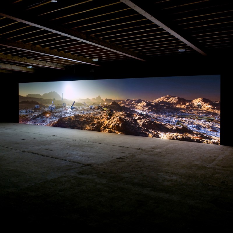 Die 12 Meter breite Multimedia-Installation „Mariner 9“ der kanadischen Künstlerin Kelly Richardson bebildert eine düstere Vorstellung vom Planeten Mars.