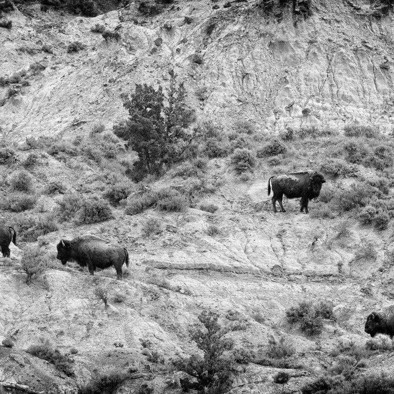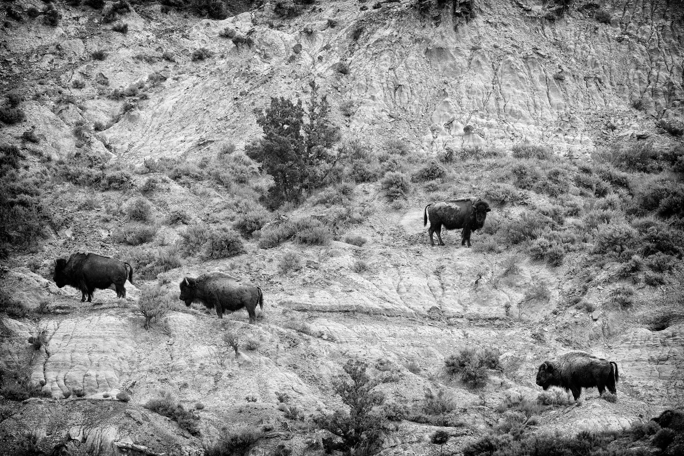 BUFFALO BALLAD: Bison-Kühe in der erodierten Landschaft des Theodore
