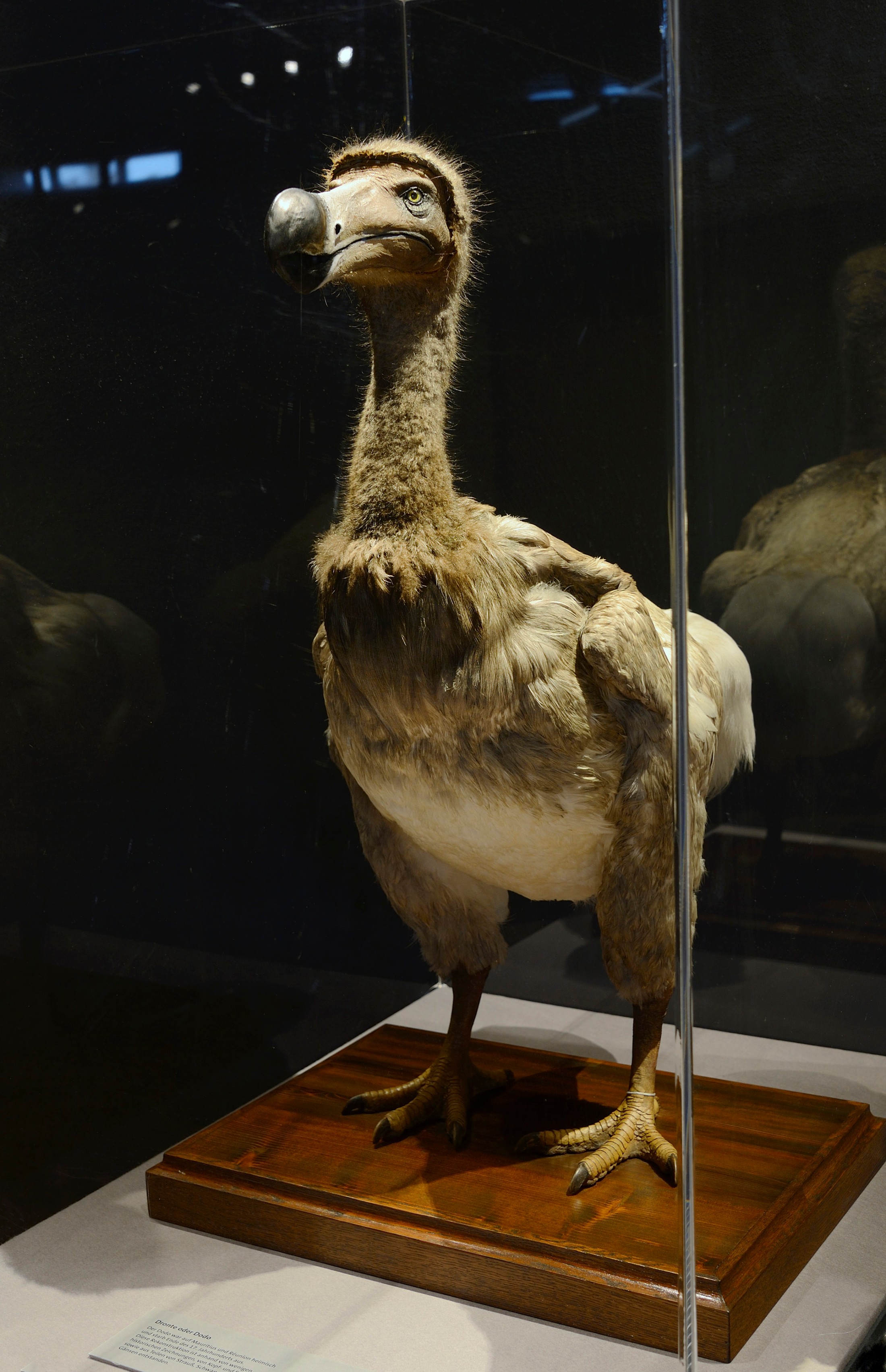 Native to Mauritius and La Réunion, the dodo died out at the end of the 17th century. This reconstruction was made from the few existing drawings as well as molds of its head and feet. Parts of ostriches, swans, eared pheasants, and geese were also used.