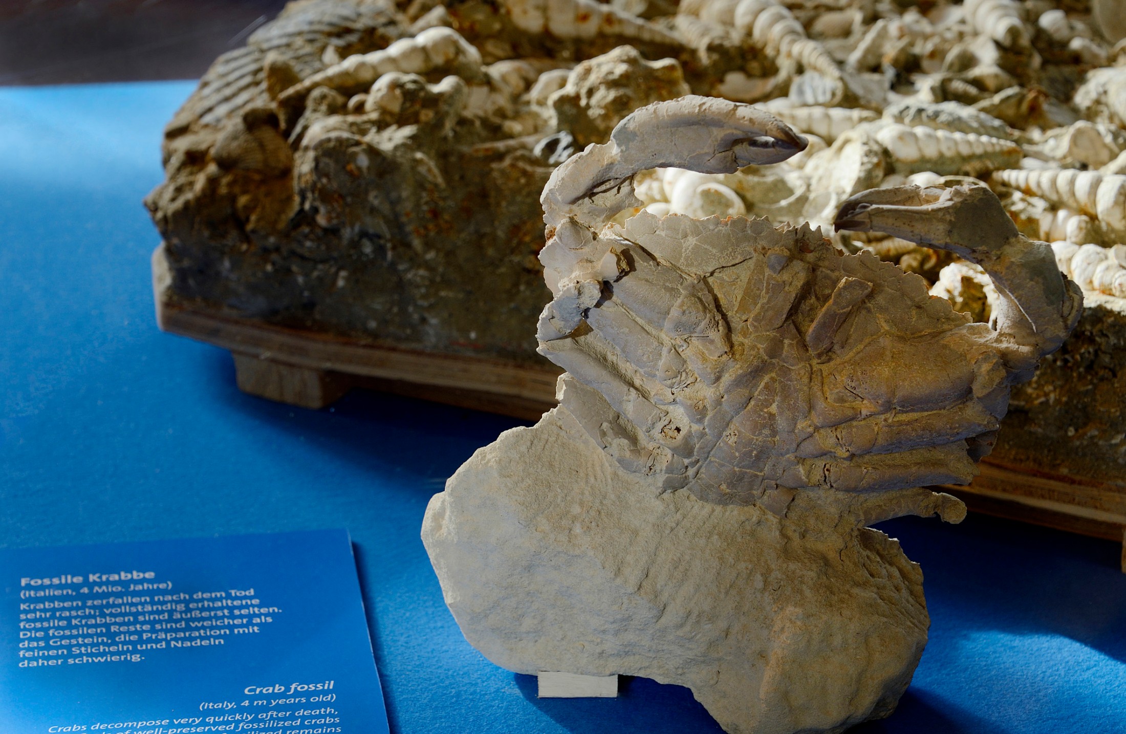 sehr rasch; vollständig erhaltene fossile Krabben sind äußerst selten. Die fossilen Reste sind weicher als das Gestein, die