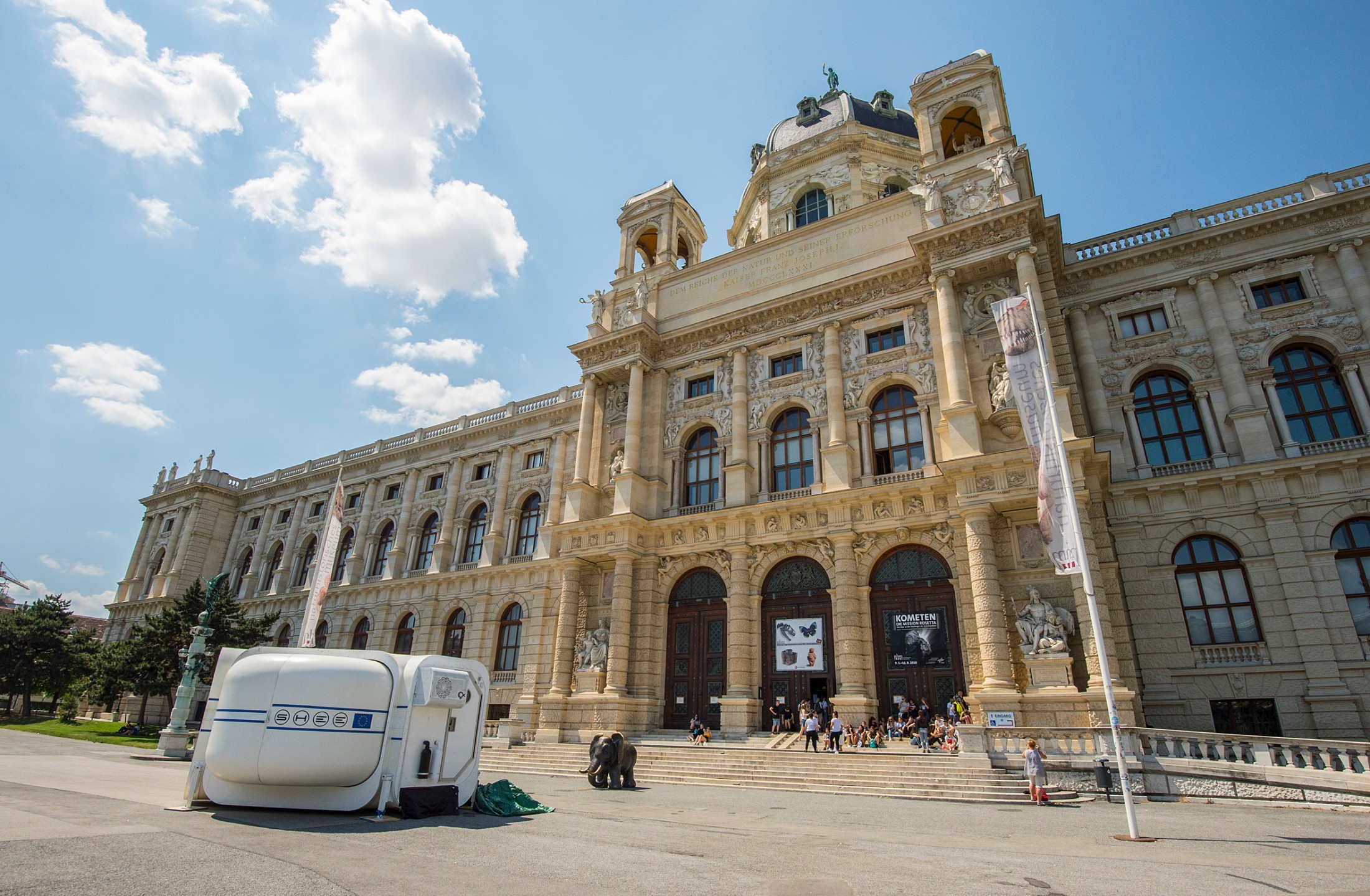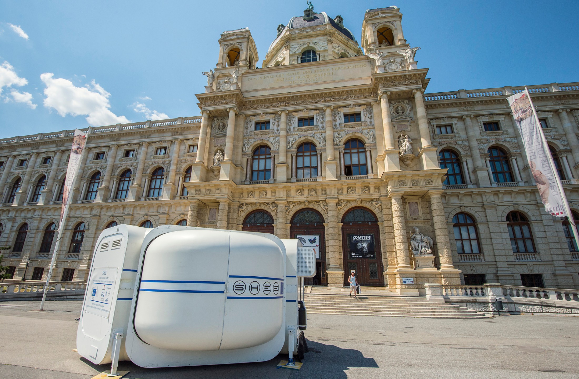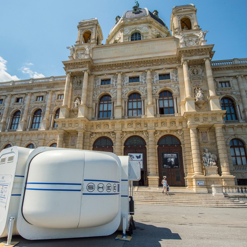 Mit der erstmaligen Präsentation des sogenannten „S.H.E.E.“ Weltraum-Habitats in Österreich bietet die Ausstellung für die erste Woche einen weiteren Höhepunkt. Das Habitat ist ein sich selbstständig entfaltender Lebensraum für Personen auf dem Mond, Mars oder in Katastrophengebieten auf der Erde und wird vor dem NHM Wien am Maria-Theresien-Platz von 20. bis 23. Juni 2018 zu besichtigen sein.