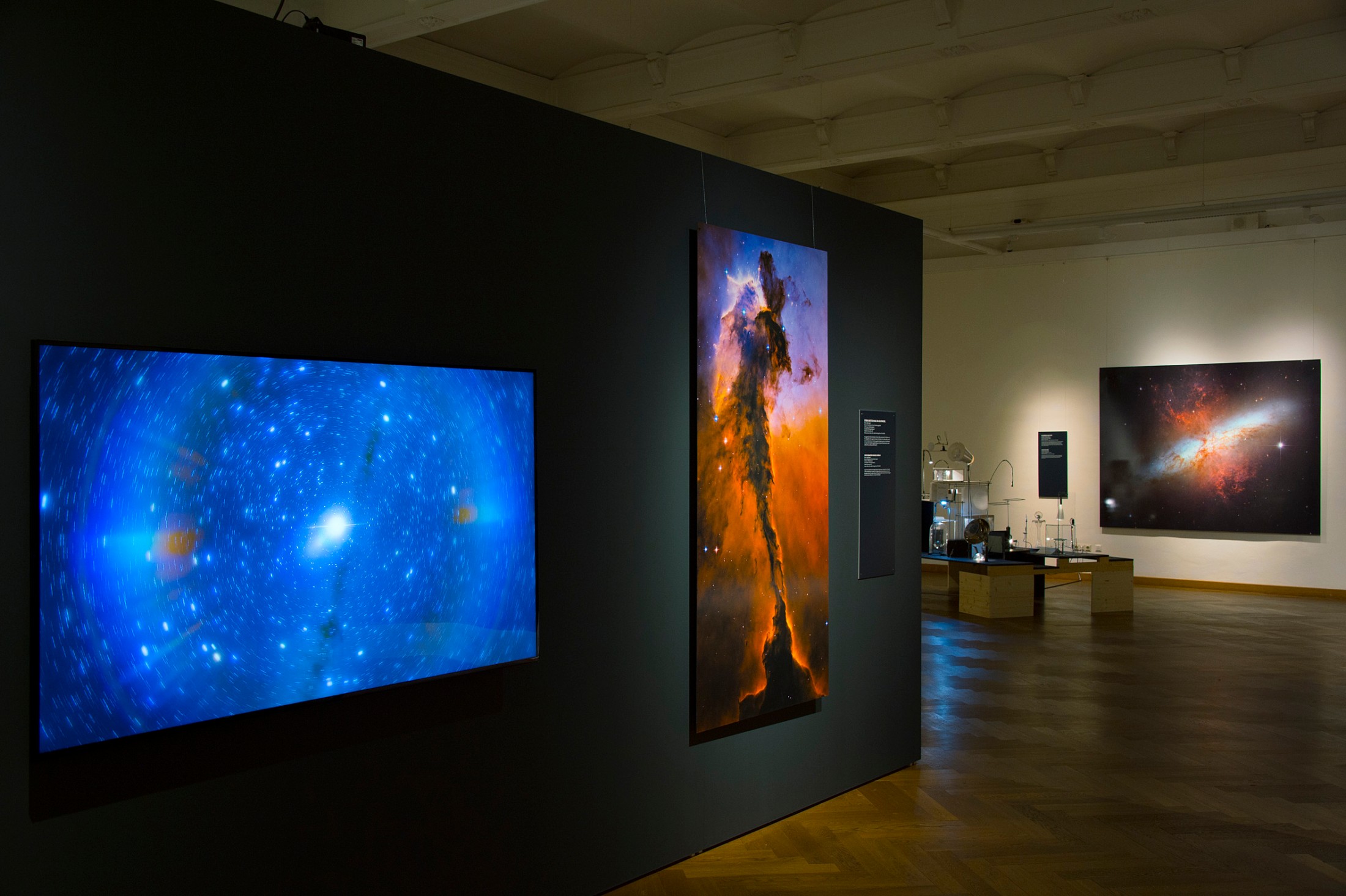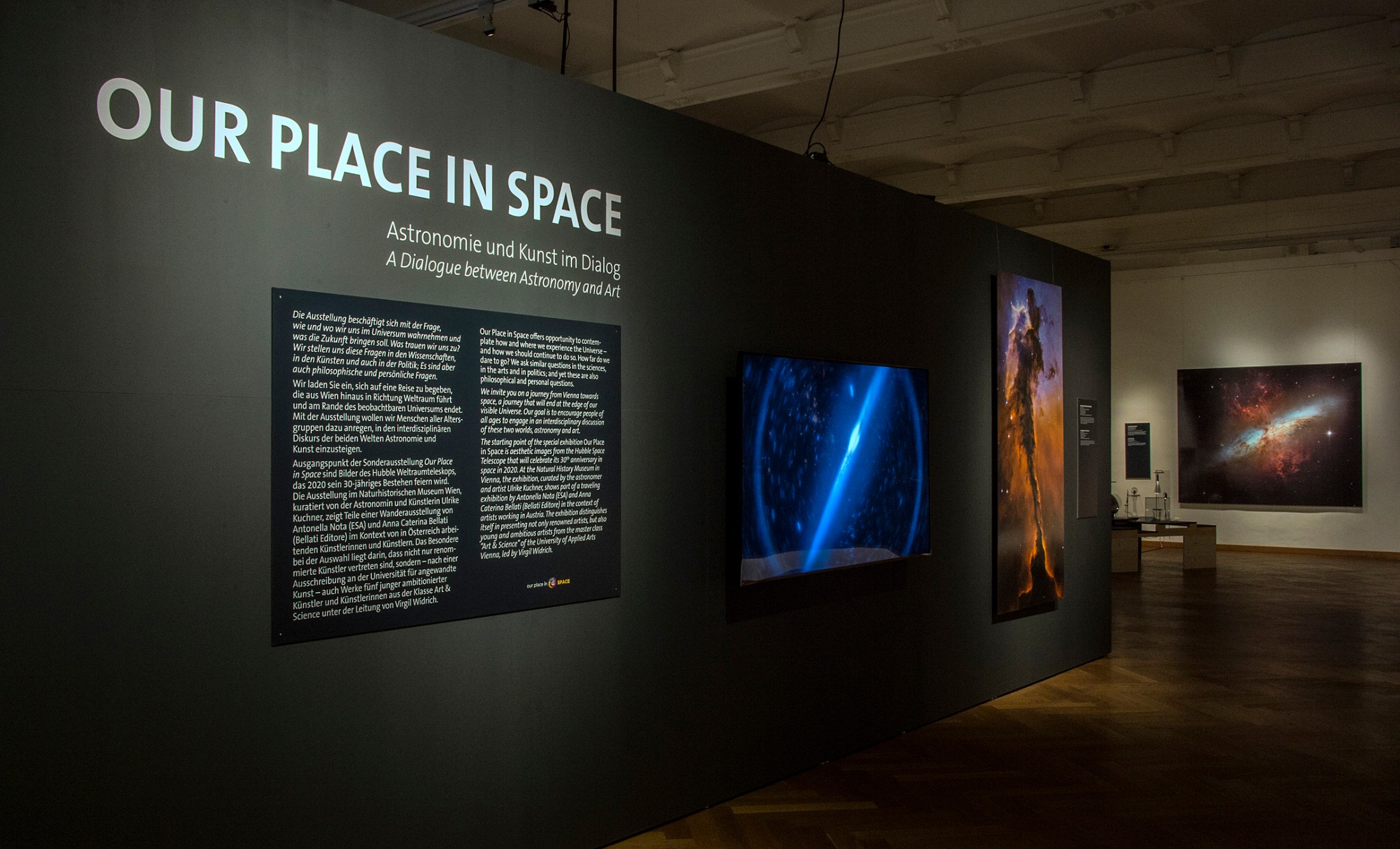 Die Ausstellung im NHM Wien, kuratiert von der Astronomin und Künstlerin Ulrike Kuchner, zeigt Teile dieser Wanderausstellung im Kontext von in Österreich arbeitenden Künstlerinnen und Künstlern. Das Besondere bei der Auswahl liegt darin, nicht nur die renommierten Künstler Steinbrener/Dempf & Huber, Nives Widauer, Payer Gabriel, Markus Reisinger und Yunchul Kim einzuladen, sondern durch eine Ausschreibung an der Universität für angewandte Kunst, Werke fünf junger ambitionierter Künstler und Künstlerinnen aus der Klasse Art & Science unter der Leitung von Virgil Widrich auszuwählen: Margit Busch & Solmaz Farhang, Anna Lerchbaumer & Eleni Boutsika-Palles, Michael Bachhofer, Daniela Brill Estrada und Monica LoCascio beziehen sich auf wissenschaftliche Aufnahmen des Hubble Weltraumteleskops und eröffnen den Zusehern neue Räume und Zugänge.