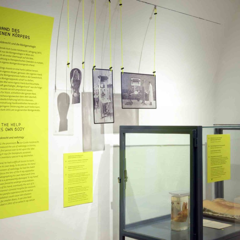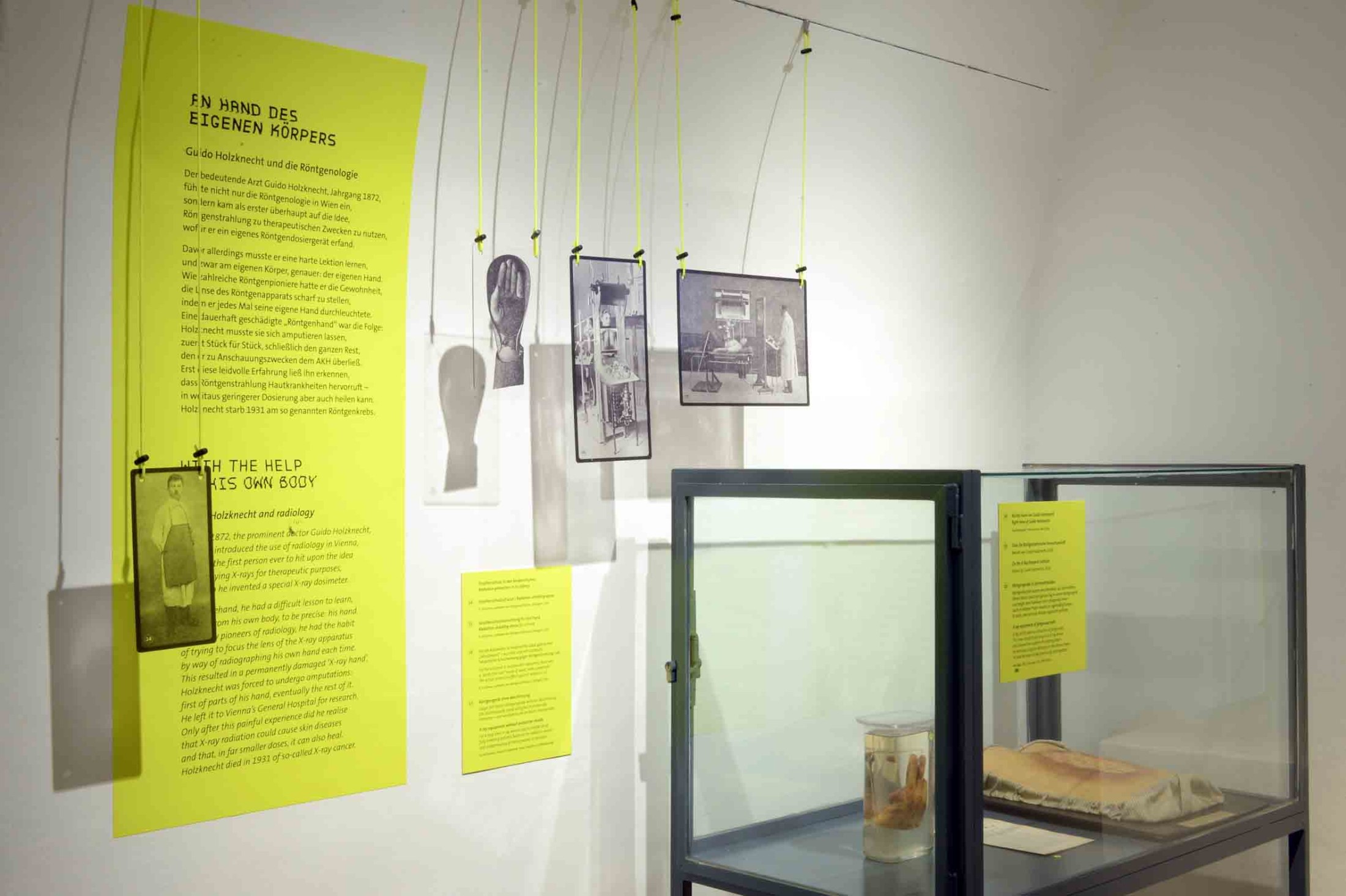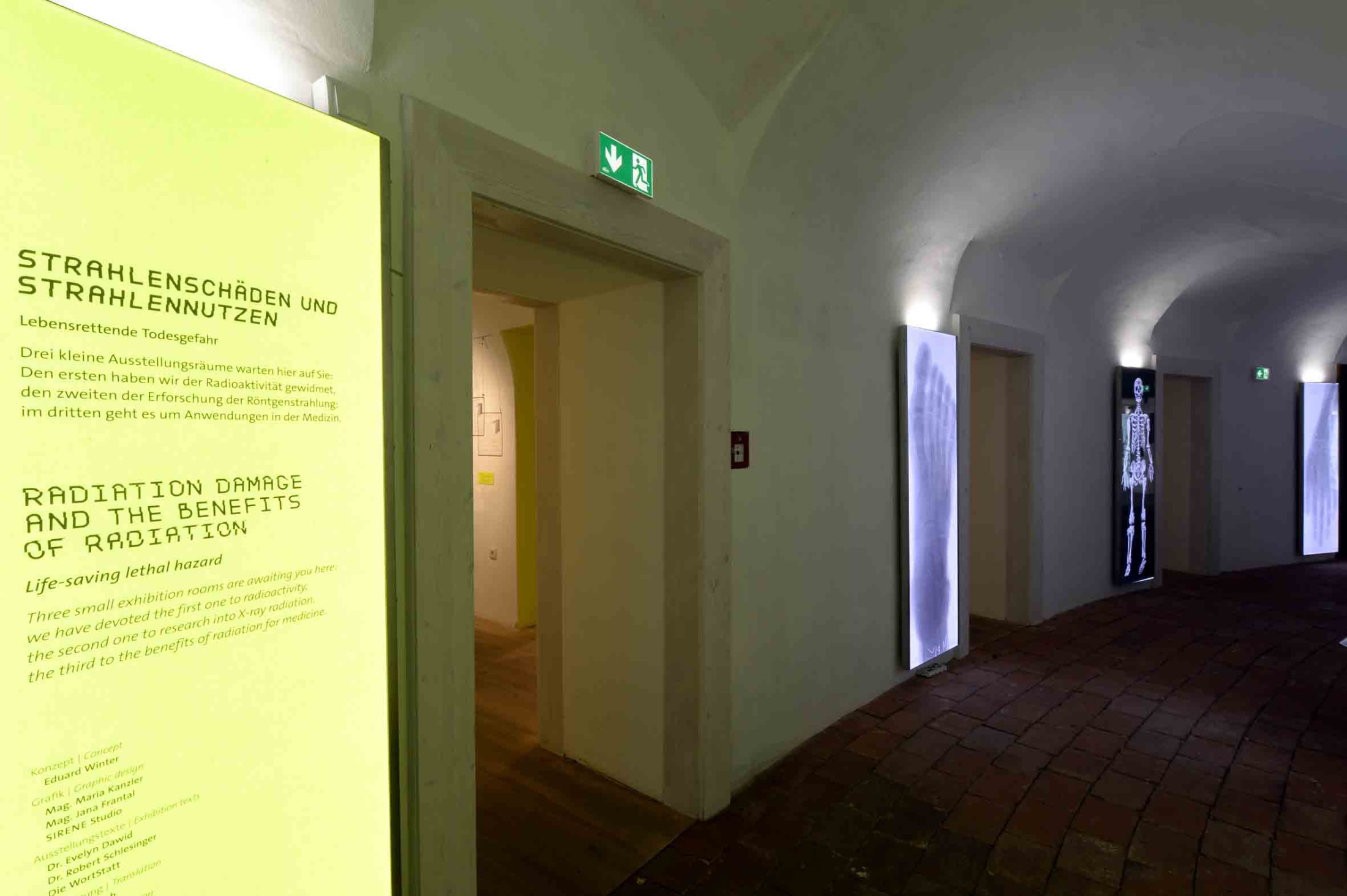 Bei Schäden durch Strahlung wird unterschieden zwischen somatischen Schäden, die beim bestrahlten Organismus selbst vorkommen, genetischen Schäden, die erst bei den Nachkommen auftreten und Schäden, die Fehlbildungen beim Embryo oder Fötus verursachen. Die neue Ausstellung im Narrenturm konzentriert sich auf radioaktive Strahlung und Röntgenstrahlung. Der Schwerpunkt liegt dabei auf den medizinischen Aspekten, neben den möglichen Schädigungen soll auch der Nutzen in Diagnostik und Behandlung gezeigt werden. Zu sehen sind in den drei Ausstellungsräumen historische Abrisse, Moulagen von durch Strahlen geschädigten Körperstellen sowie Organpräparate.