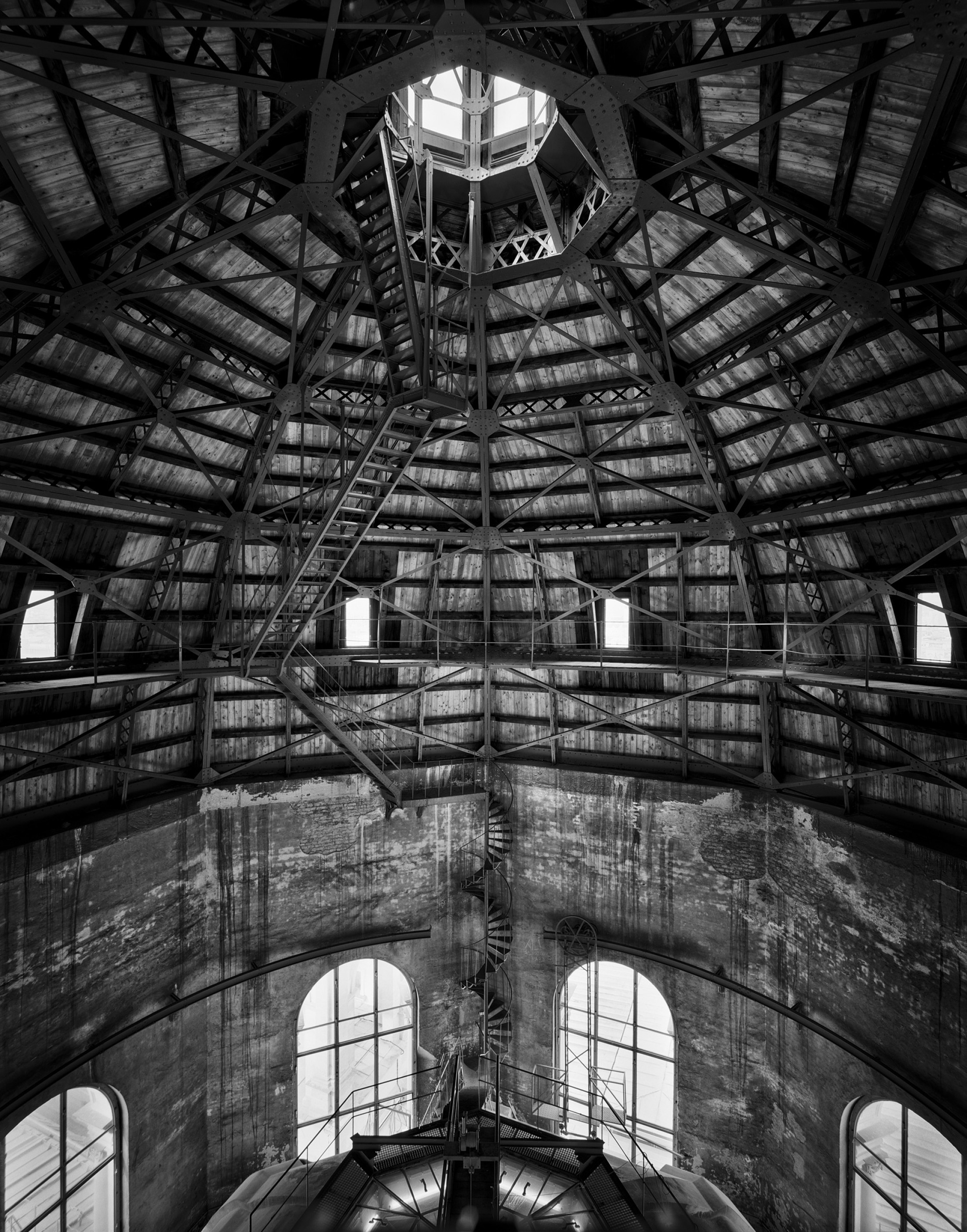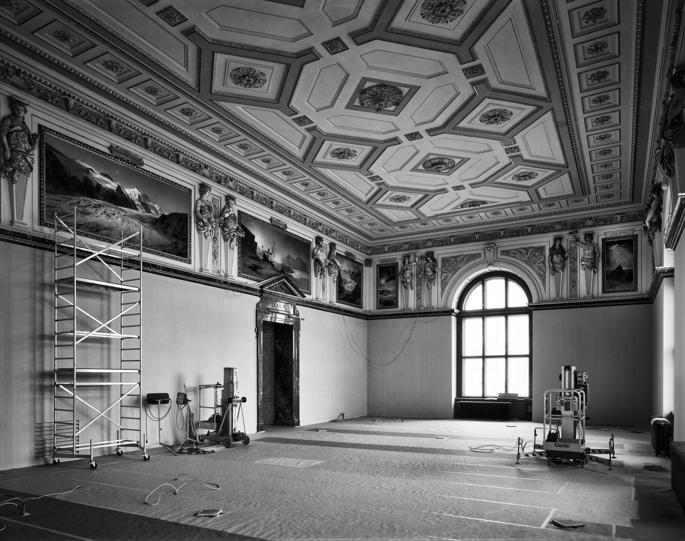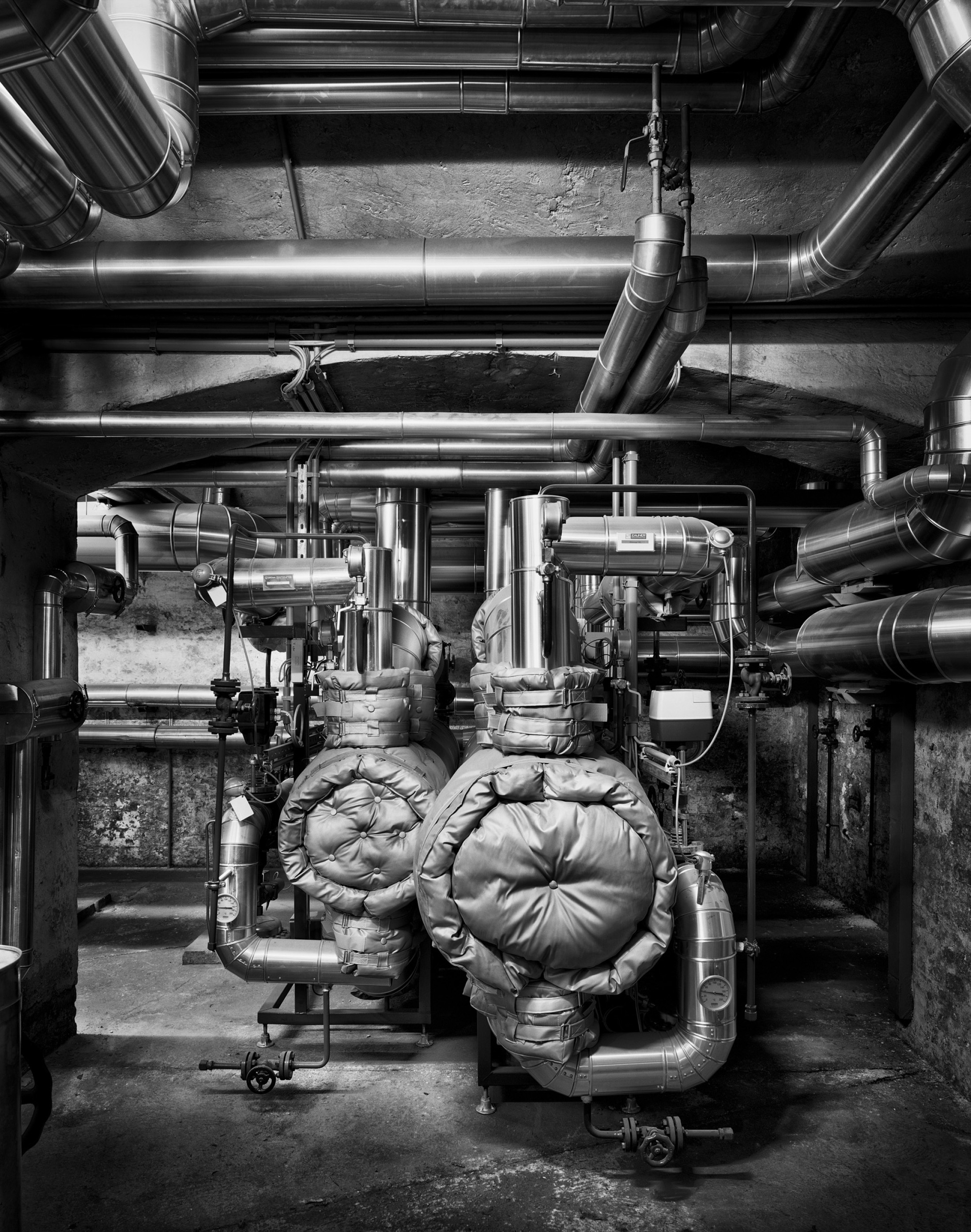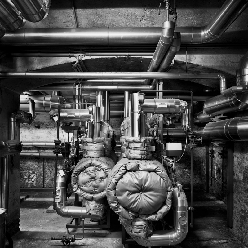 Farbfotos verraten mehr über den Zeitpunkt der Aufnahme, die Schwarz-Weiß-Fotografie erschwert hingegen die zeitliche Orientierung. Zeitgebunden sind Ausstattungselemente rund um die Haustechnik, Licht- und Elektroinstallationen oder das Lagermobiliar. Handelt es sich jedoch um Motive, die ausschließlich historisches Inventar zeigen, haucht Oláh dem zeitlosen „Raum aller Zeiten“ eine Spur von Ewigkeitsanspruch ein.
