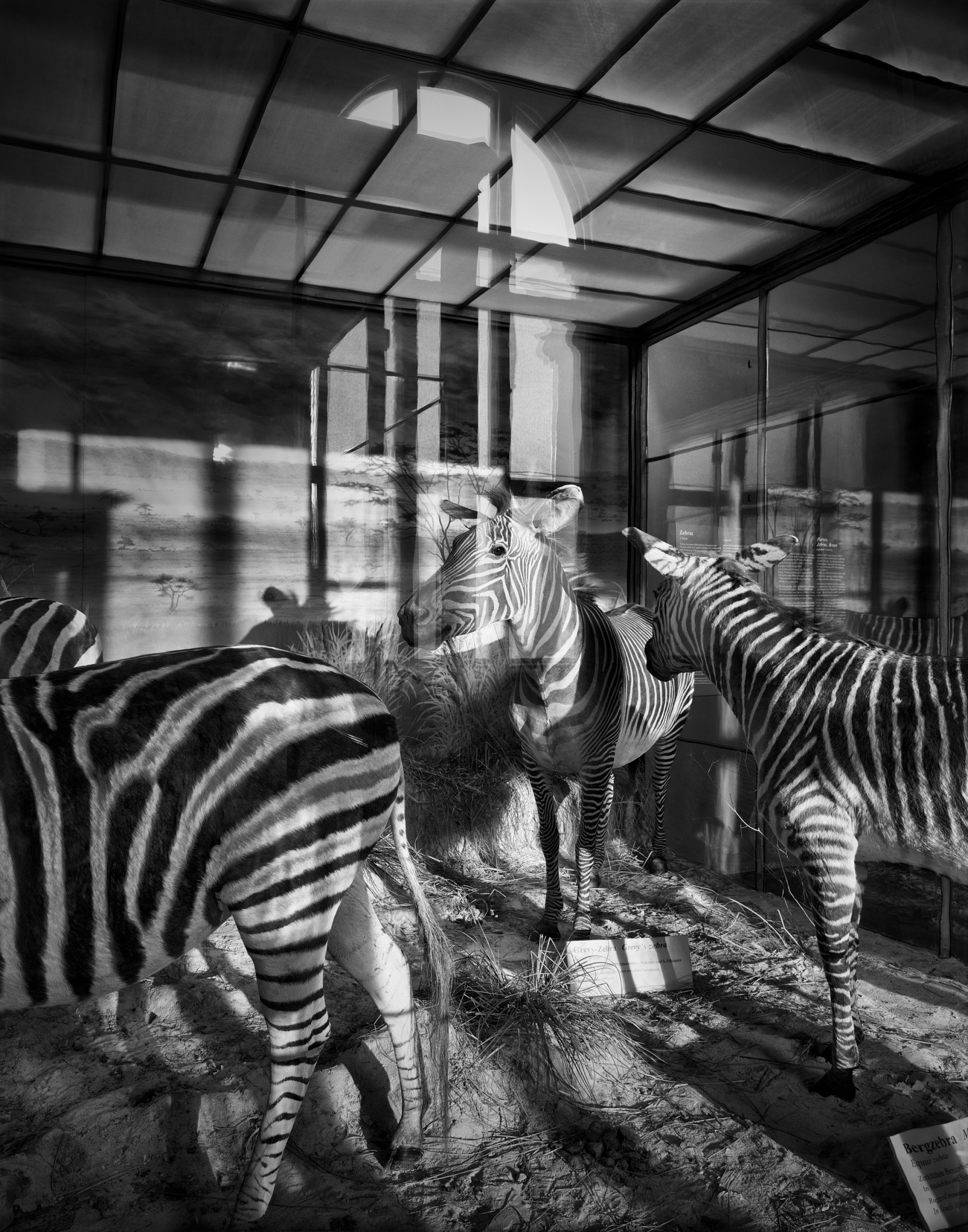 Stefan Oláhs Beziehungsbilder schaffen aber auch Unbehagen: Die Endlichkeit von Lebenszeit portraitiert er, indem er den Versuch ihrer Überwindung im musealen Raum dokumentiert. Eine verstummte Konferenz der Tiere versammelt er in Form von Stopfpräparaten von Gorilla, Zebra, Seekuh, Büffel, Rotwild und anderen. Aus ewigen Glassärgen glotzen blasse, auf ihrer Schwanzflosse aufrecht tänzelnde Fischleiber. An Todesangst im Zweiten Weltkrieg erinnert die erhaltene Aufschrift „Ruhe bewahren // Rauchen verboten“ an den Wänden im Keller des Museums. Die menschliche Schädelsammlung wird zum Friedhof von Unbestatteten. Und die Darstellungen im Saal 6 erinnern uns an koloniale Landnahmen der Habsburger ebenso wie an die Ausmaße der Pasterze lange vor Erderwärmung und Gletscherschmelze.