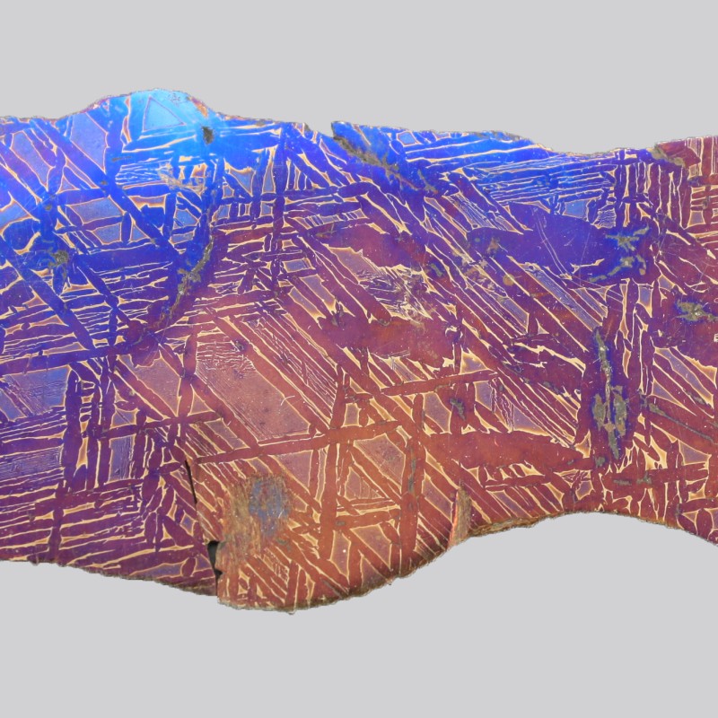 Figuren“, regelmäßige Muster sich kreuzender Lamellen. Diese können bei den meisten Eisenmeteoriten sichtbar gemacht werden.