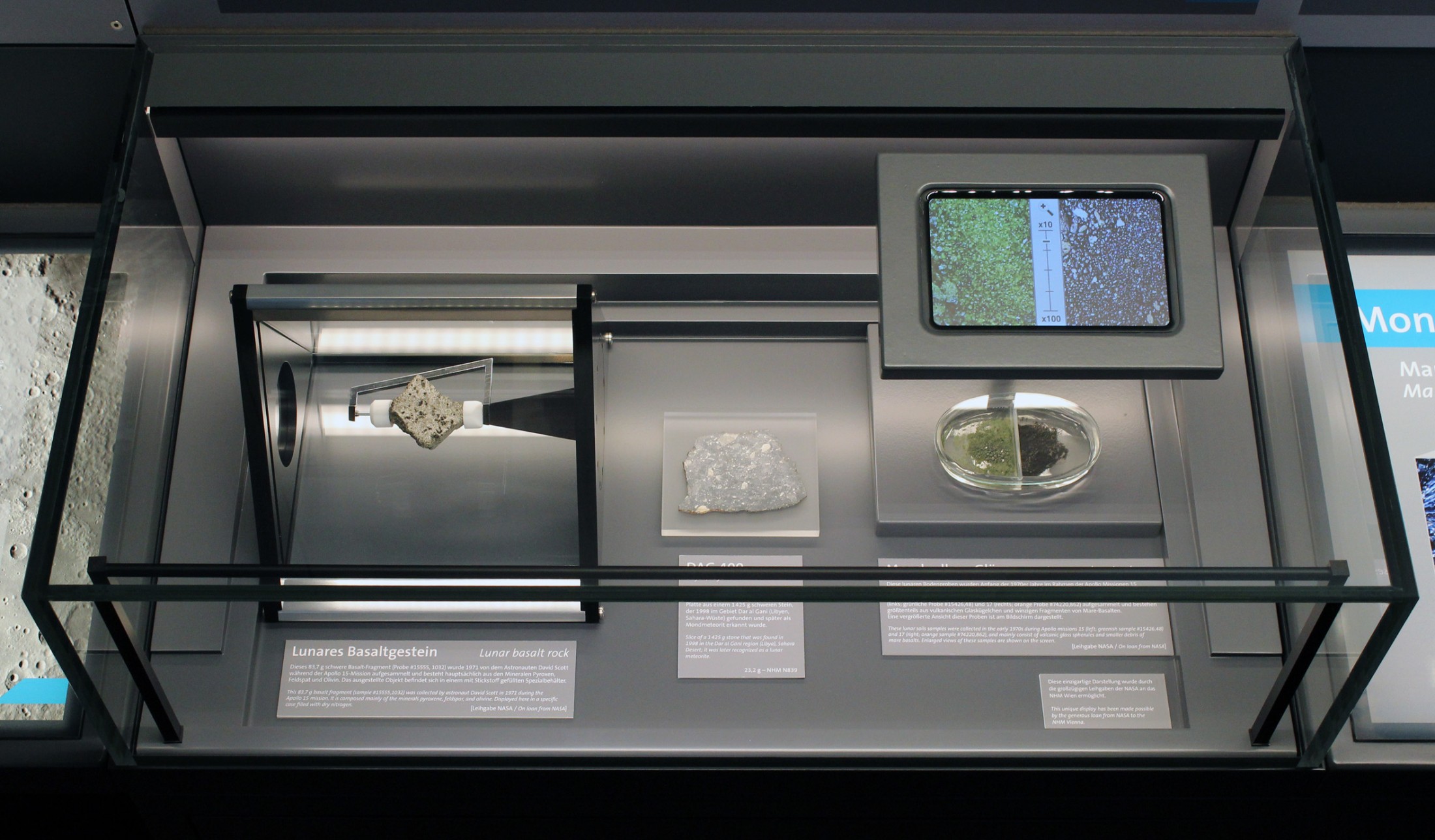 Museum Wien ist es gelungen, drei Proben von Mondgesteinen der Missionen Apollo 15 und 17 als langfristige Leihgaben von der