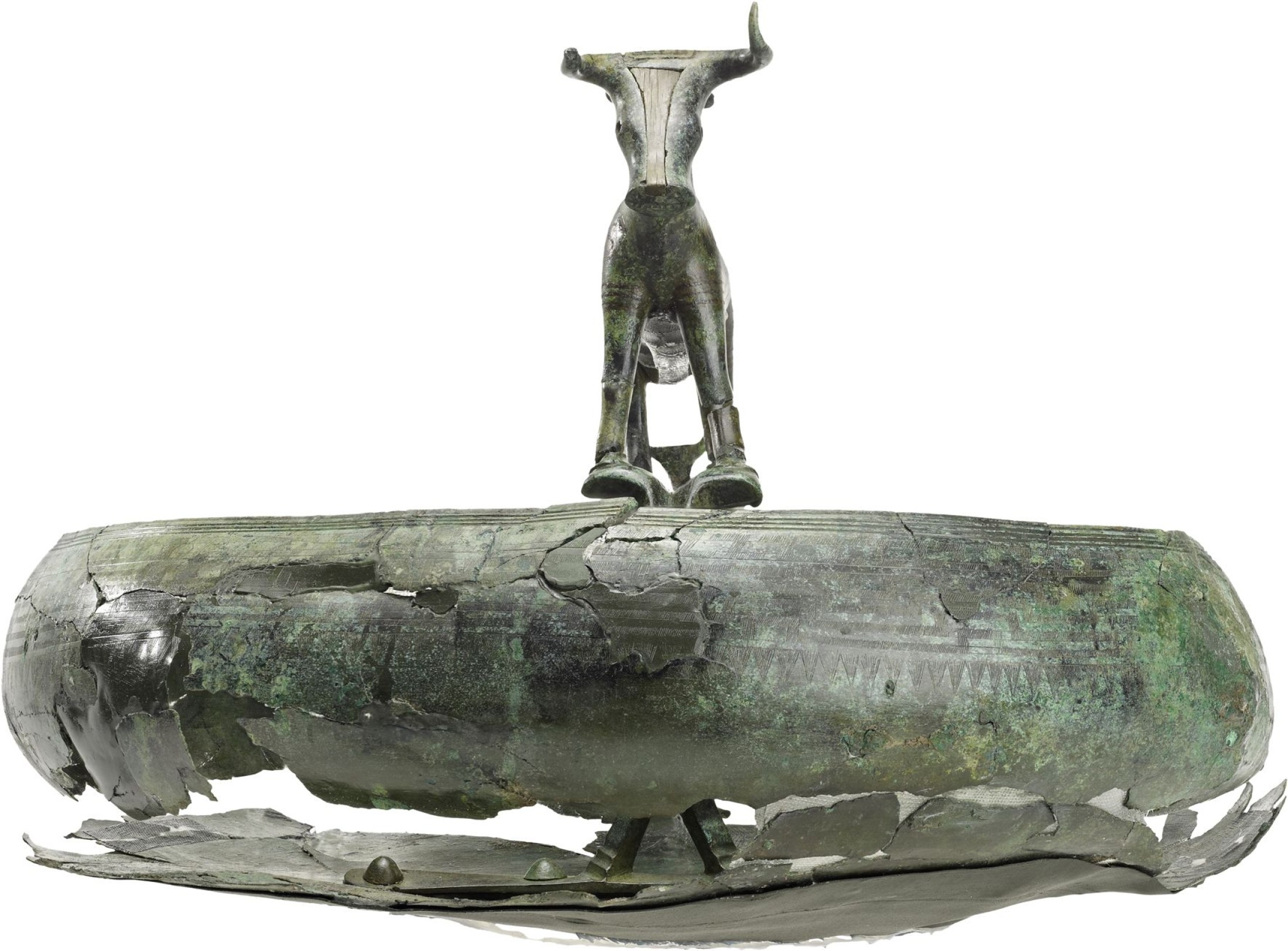 Ein Schöpfgefäß aus Bronze mit dem Griff in Form einer Kuh mit nachgestelltem Kalb zählt zu den beeindruckendsten Entdeckungen. Den umfassenden Restaurierungs- und Konservierungsarbeiten ist es zu verdanken, dass der Neufund in einmaliger Qualität ausgestellt werden kann. Das Gefäß wurde im 6. bis 5. Jahrhundert vor Christus als Grabbeigabe beigelegt, ein sehr seltenes und wertvolles Objekt. Es zeichnet sich vor allem durch zahlreiche kunstvolle Ornamente und Symbole in Technik der Eisentauschierung aus.