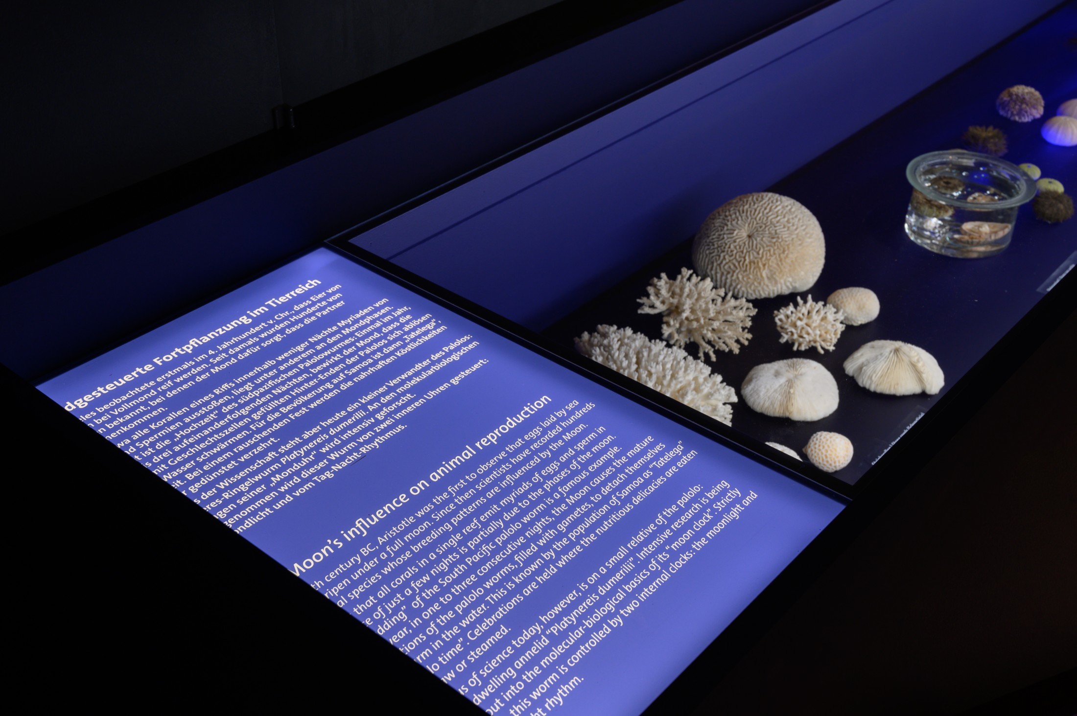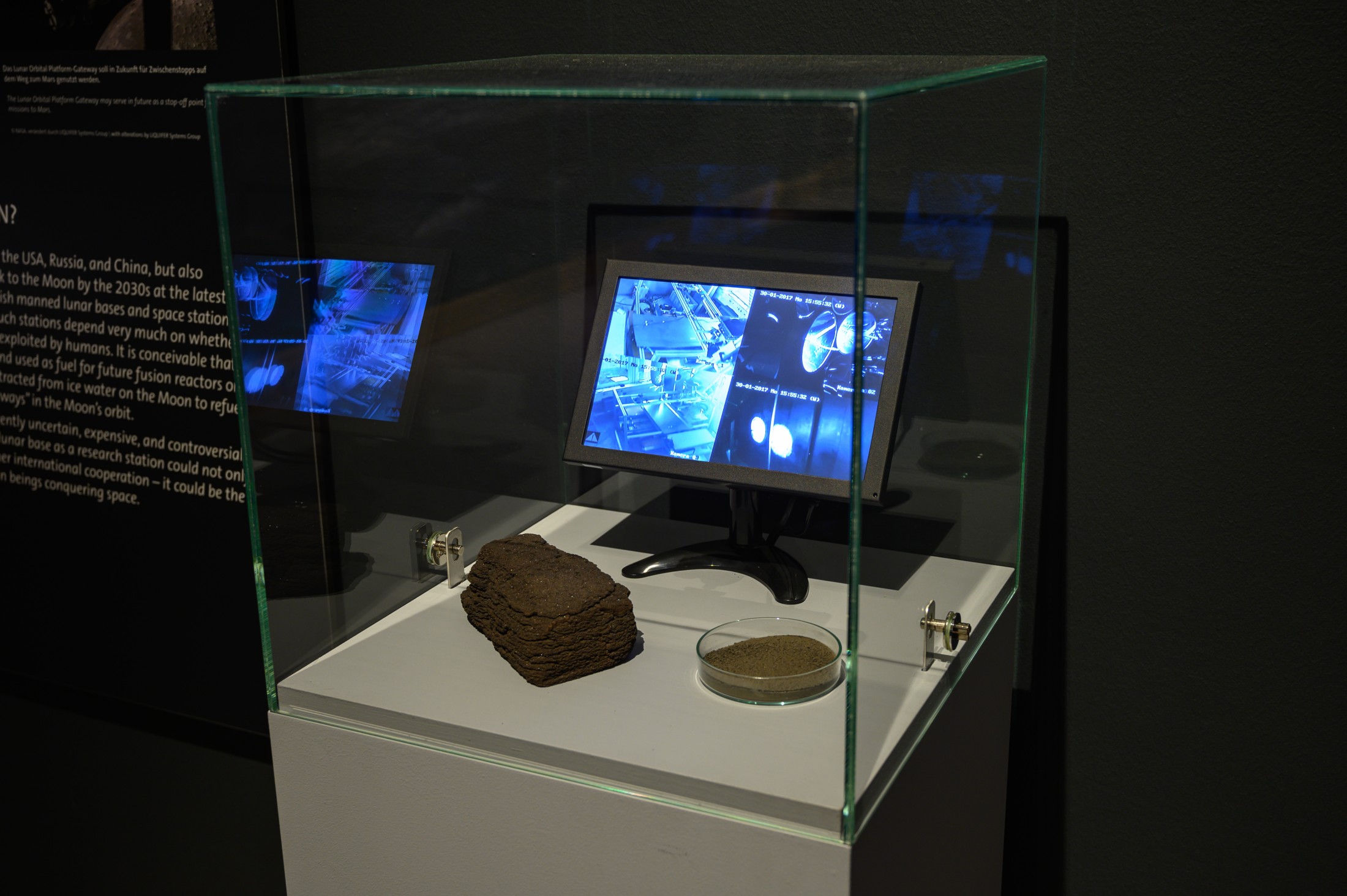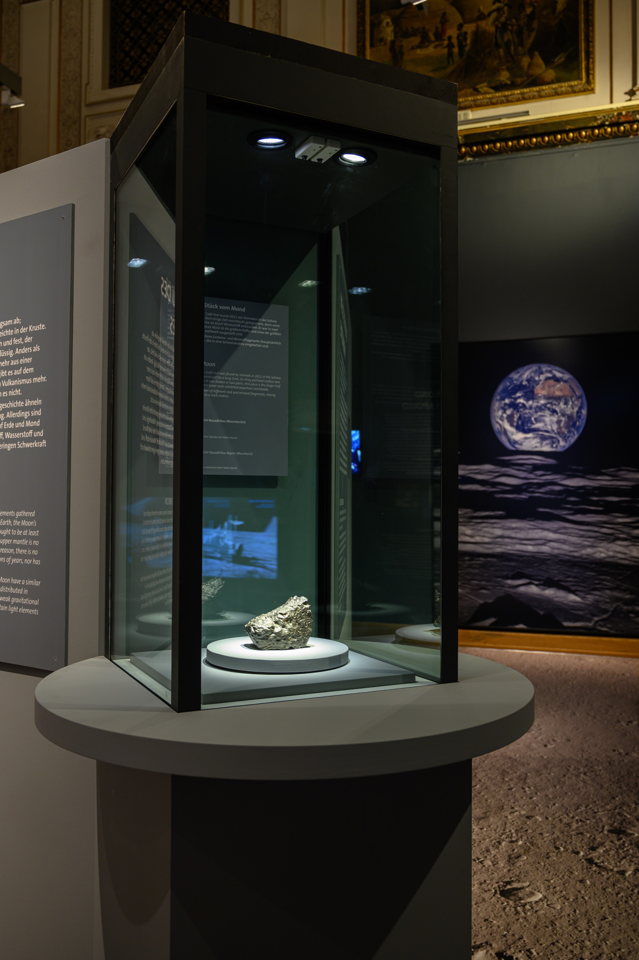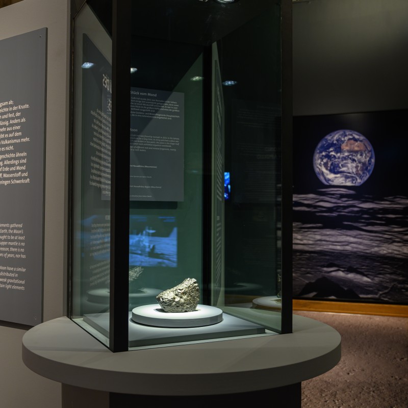 Der Mond als geologisches Objekt, seine Zusammensetzung und der Prozess seiner Entstehung kommen ebenso wenig zu kurz wie die Geschichte seiner Erforschung mit Hilfe der Raumfahrt und der Mondlandung. Interaktive Stationen bieten Gelegenheit, den Mond zu riechen, selbst zum Mond-Rover-Fahrer zu werden oder ein echtes Stück Mond anzufassen. Zu den Highlights zählt außerdem ein für das Haus neu erworbener Mondmeteorit, der erstmals im Rahmen dieser Ausstellung gezeigt wird.