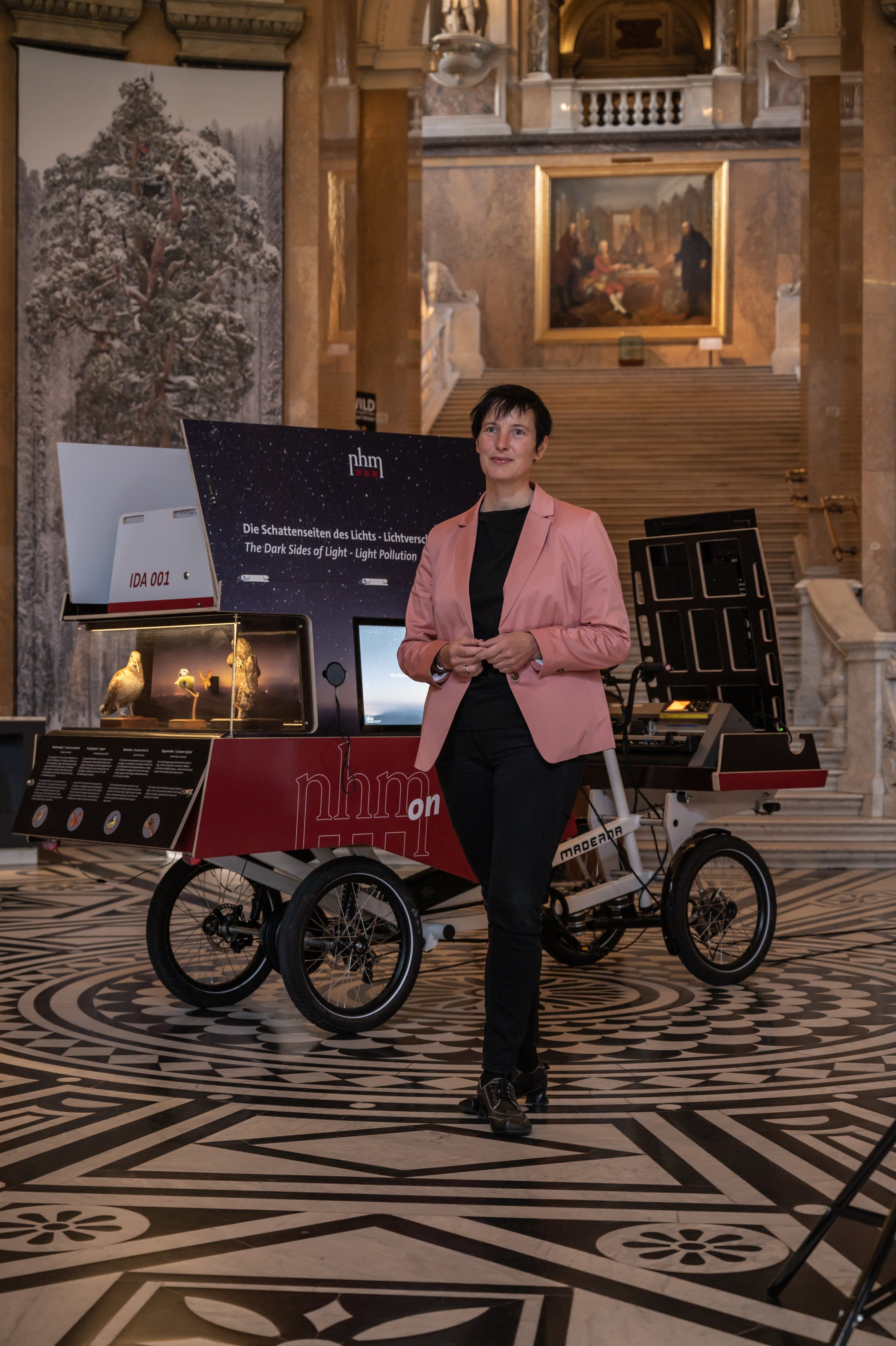 Generaldirektorin Dr. Katrin Vohland mit dem Fahrrad "NHM Wien on tour"