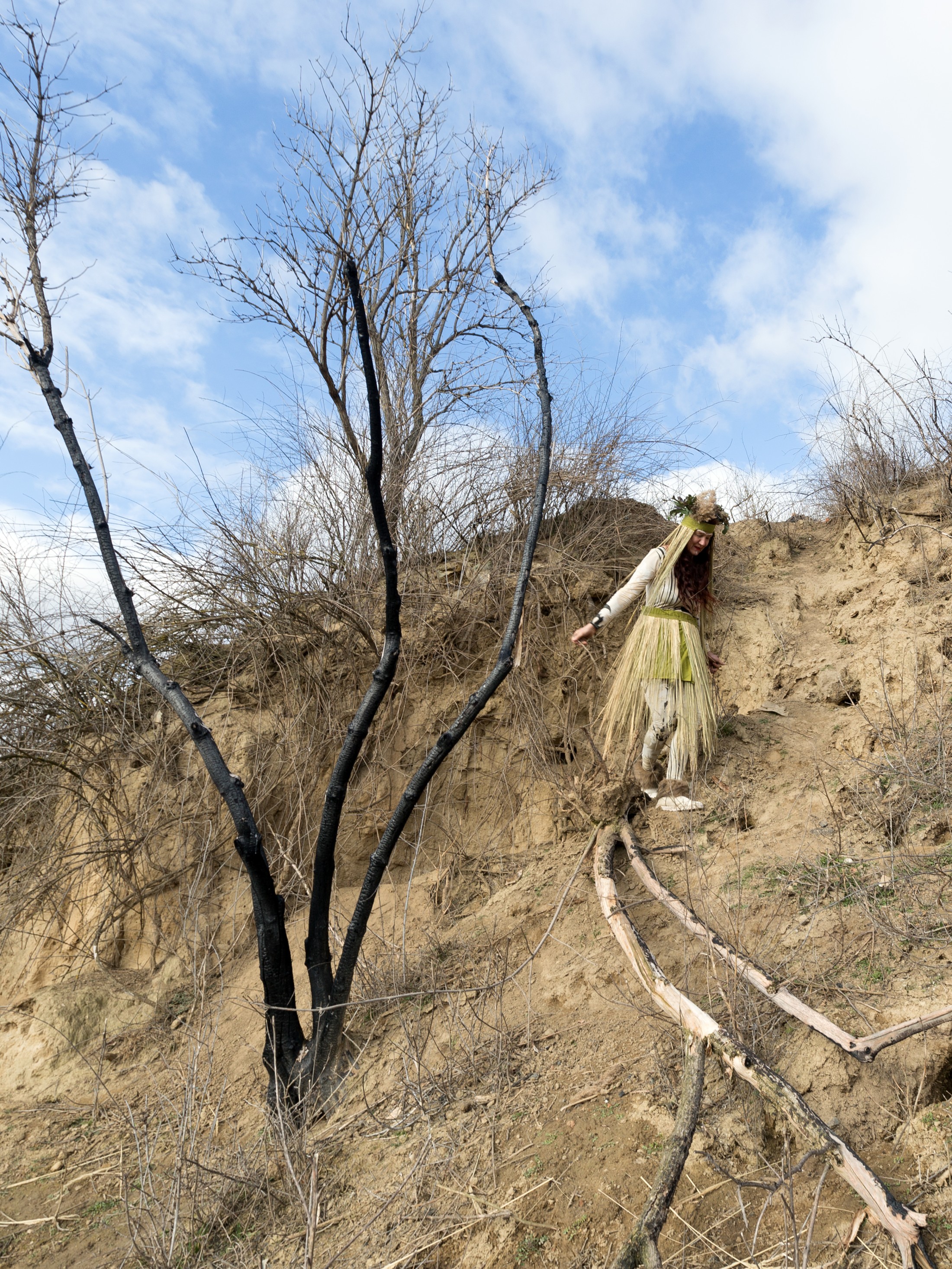 Am Eiszeitgang spannt die Künstlerin Elisabeth von Samsonow bis 04.10.2020 mit drei großformatigen Fotografien und zwei Collagen einen Bogen von der Frau in der Löss-Landschaft bis hin zur Venus von Willendorf. Ihre performative Installation wurde von Felicitas Thun-Hohenstein kuratiert. Angetan mit einem Graskleid und einem Kopfschmuck aus winterlichen Schilfblüten streift die Künstlerin suchend und forschend durch die Lösslandschaft Niederösterreichs. Im Löss hat man die 29.500 Jahre alte Venus von Willendorf gefunden und die noch ältere Fanny vom Galgenberg. Samsonows Fotografien beziehen sich auf diese „älteren Schwestern“, die im Venuskabinett der Prähistorischen Schausäle zu sehen sind. Die Serie kann als visuelle Lyrik zum Thema „Frau und Erde“ verstanden werden.