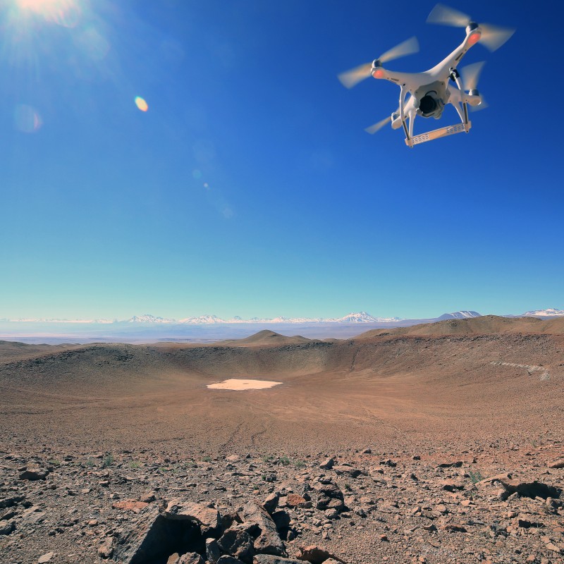 mit einem Durchmesser von 455 Metern von einer Drohne überflogen, um seine Morphologie im Detail zu dokumentieren und zu untersuchen.
