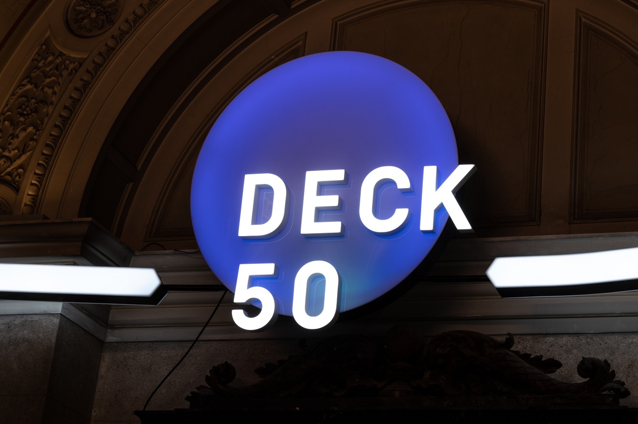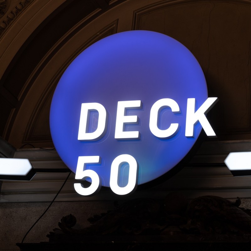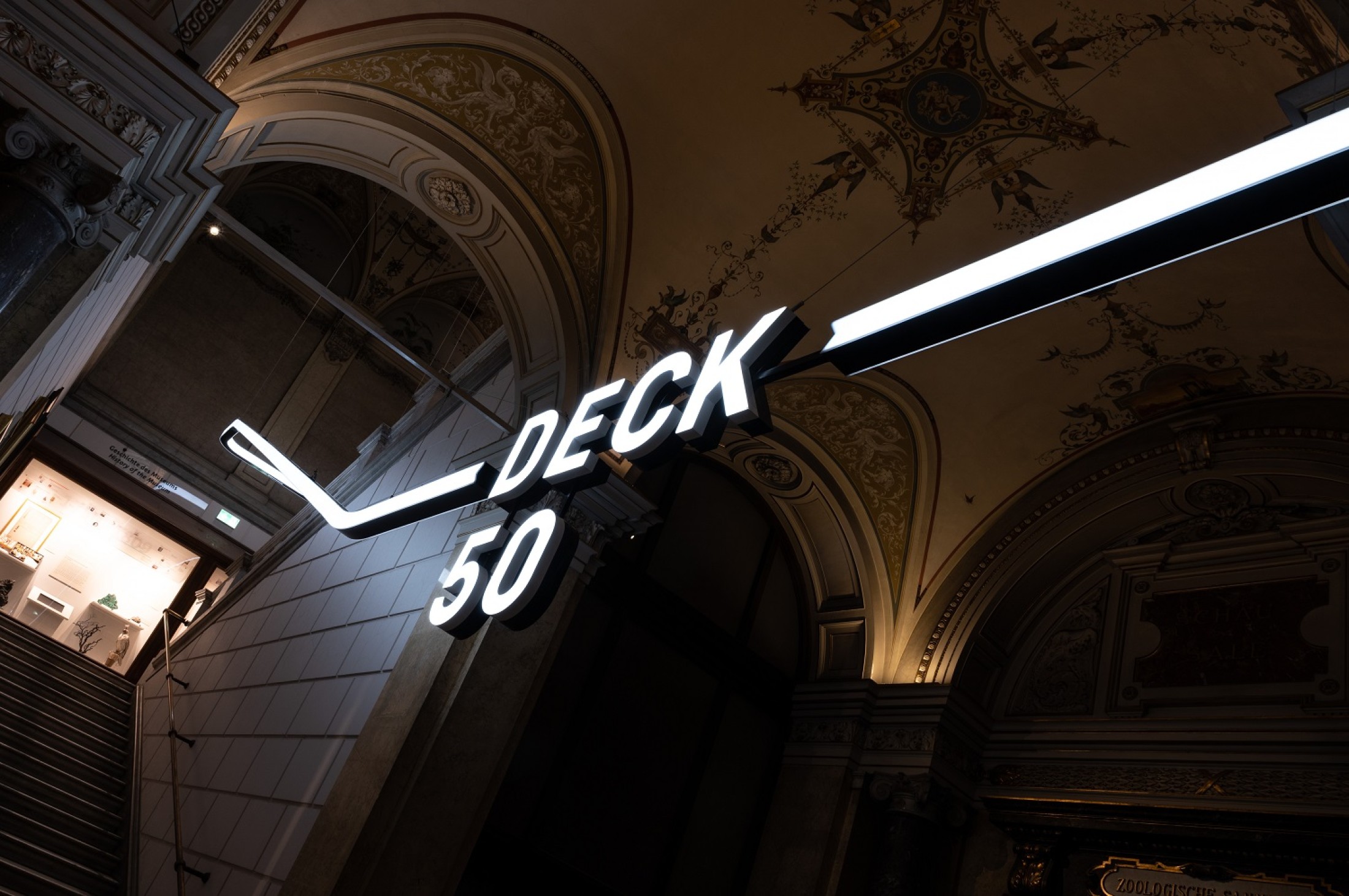 Diese Intentionen bestimmen auch die Architektur und das Erscheinungsbild des neuen Raumes: In der Begegnungszone befinden sich eine Tribüne mit Platz für bis zu 60 Personen sowie 4 interaktive Stationen mit Forschungsthemen und -objekten. Gegenüber der Tribüne befindet sich eine 11 Meter lange LED-Wand, die multimedial mit Shows, Science Quizzes und immersiven Welten bespielt wird. Auf der anderen Seite des Raumes lädt ein Labor-Bereich mit Schauvitrinen, Mikroskopen und Workshop-Material ein, Wissenschaft gemeinschaftlich zu erleben. Direkt darüber befindet sich ein großflächiges Workshop-Areal. Die Angebote des Deck 50 gliedern sich etwa in „Meet a Scientist“- oder Citizen Science-Formate, Science Quizzes, Mikrotheater, Dinoshows, verschiedene Schul-Workshops oder das Open Deck, in diesem Format kann das Publikum den Raum und die Stationen frei erkunden.