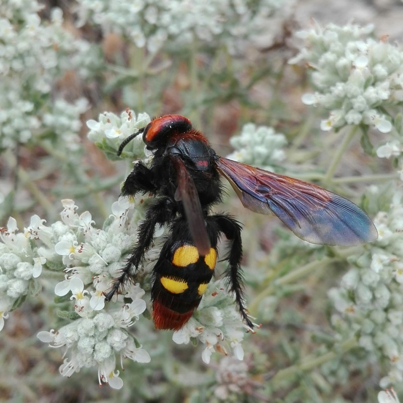 Die Rotstirnige Dolchwespe (Megascolia maculata) ist mit bis zu 4,2 cm Körperlänge die größte Wespenart Europas.