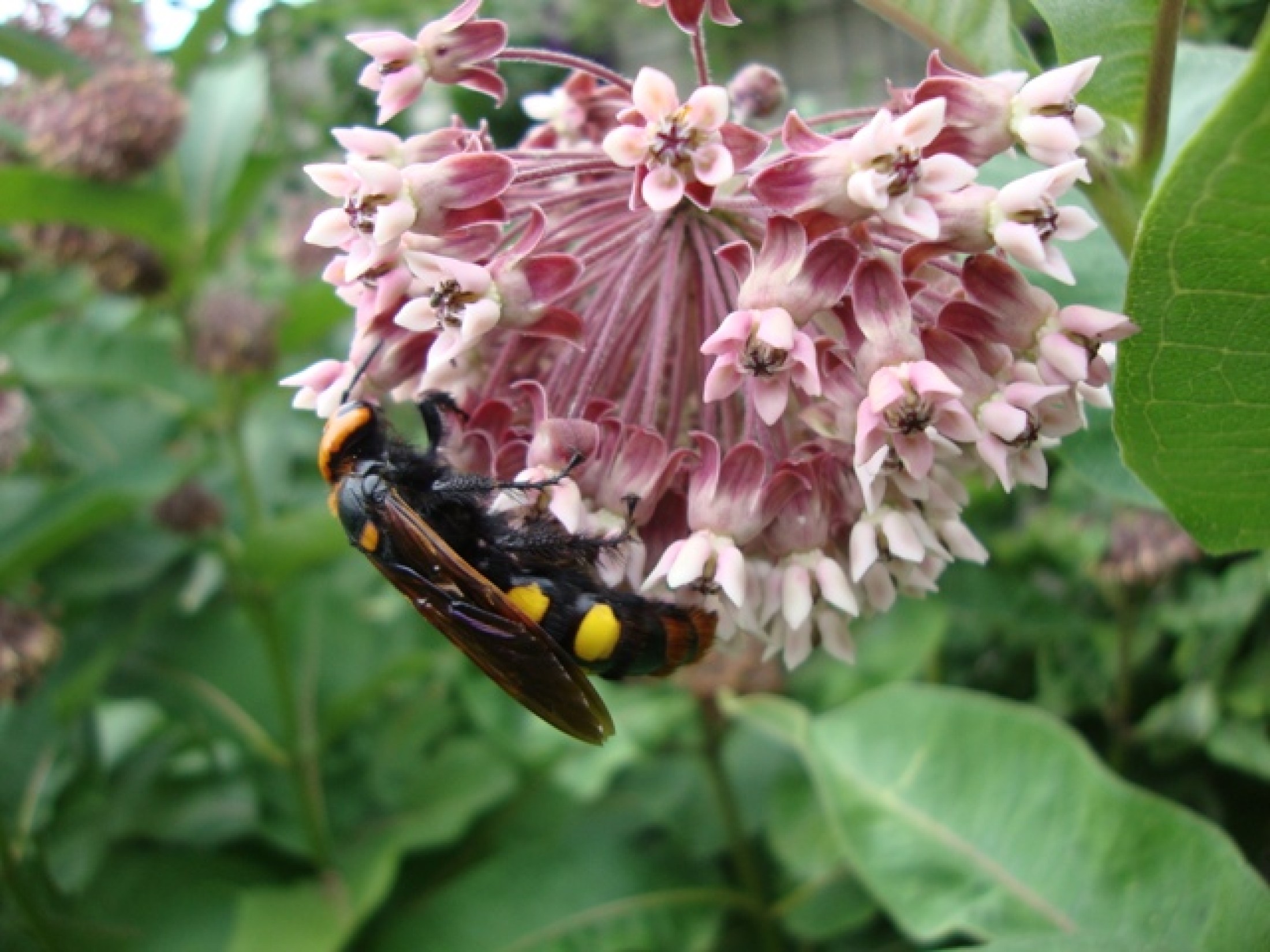 Rotstirnige Dolchwespe auf der Gewöhnlichen Seidenpflanze, Hohenau an der March