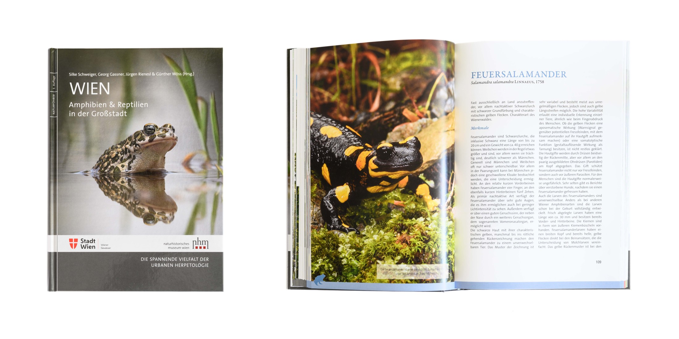 Bereits seit 1990 werden am NHM Wien Verbreitungsdaten aller heimischen Amphibien- und Reptilienarten aufgezeichnet. Seit 2018 wurde aktiv an der Vorbereitung des Buches gearbeitet, das im hauseigenen Verlag des NHM Wien produziert wurde. Mit wunderschönen Bildern und detailgenauen Zeichnungen stellen die insgesamt 18 Autorinnen und Autoren die Tiere und ihre Lebensräume in dem neuen Buch vor. In kurzweiligen Geschichten rund um die Herpetofauna zeigen sie auch, wie sehr Amphibien und Reptilien Teil von Wien sind, nicht nur als Teil der Tierwelt, sondern auch in Kunst und Kultur.