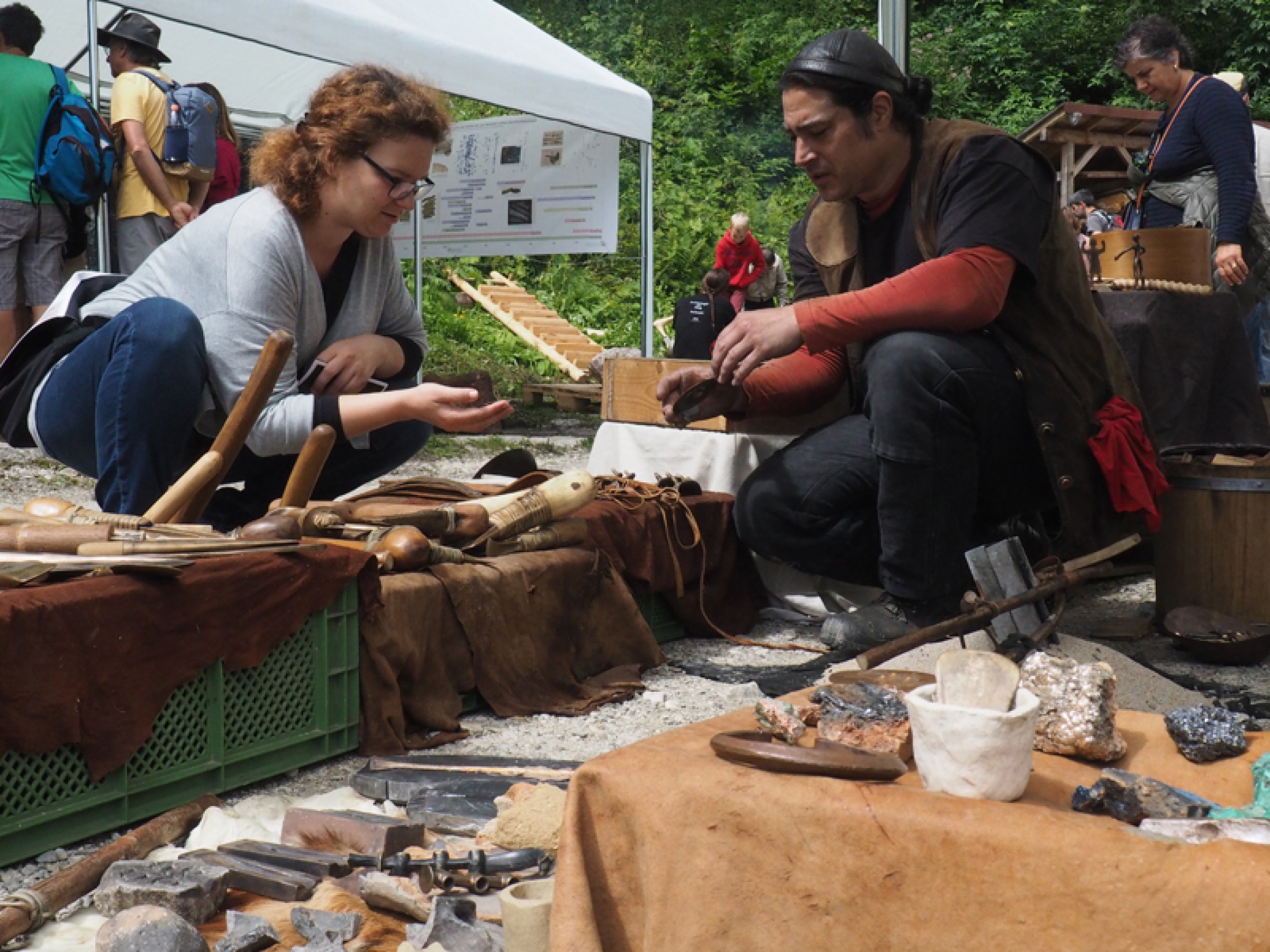 Erfahren Sie, wie jahrtausendealter Blütenstaub nachhaltige Waldwirtschaft belegt. Erleben Sie bei der großen Sudpfanne, wieviel Energie in einem Kilogramm Holz steckt. Probieren Sie sich an der Herstellung eines bronzezeitlichen Kleidungsstücks oder drehen Sie ihr eigenes Bastseil. Finden Sie heraus, wie an Skeletten noch nach 2.500 Jahren Versorgungskrisen erkannt werden. Erleben Sie mit, wie am Tablet Animationen zum prähistorischen Bergbau erstellt werden. Tauchen Sie mit uns ein in die Welt des Bergbaus und erfahren Sie, wie Wissenschafter*innen aus unterschiedlichsten Fachrichtungen das Umfeld des prähistorischen Bergwerks erforschen. Erhalten Sie Einblicke in das Leben der Hallstätter Bergleute vor über 3.000 Jahren.