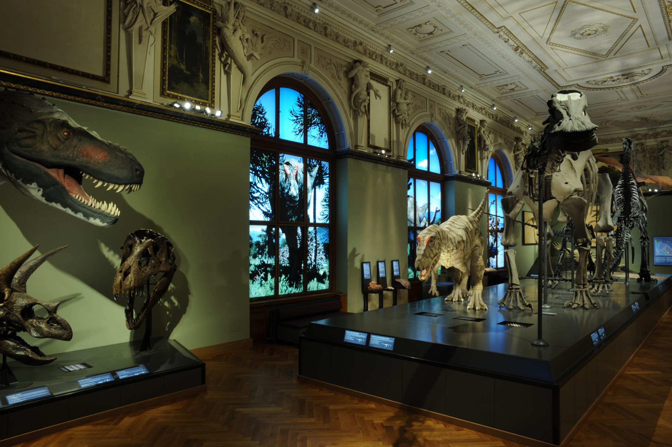 Das erste Großprojekt der neuen Generaldirektion ist vollendet: Ab morgen ist der neugestaltete Sauriersaal für alle Besucher des Naturhistorischen Museums wieder zugänglich. Ein lebensgroßes, bewegliches Modell eines Allosaurus, das den Mittelpunkt des Raumes bildet, ist nur eines der vielen neuen Highlights. Modernste Videoanimationen und interaktive Stationen vermitteln das Leben vor mehr als 65 Millionen Jahren so eindrucksvoll wie noch nie.