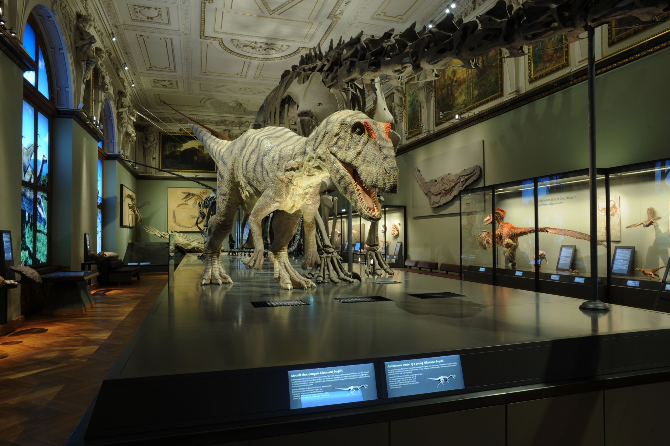 Ab 5. Oktober 2011 wird im Wiener Naturhistorischen Museum eine seiner Hauptattraktionen wiedereröffnet: der völlig neugestaltete Dinosauriersaal. Ein lebensgroßes, bewegliches Modell eines Allosaurus ist nur eines der vielen neuen Highlights. Modernste Videoanimationen (produziert von 7reasons, © NHM) und interaktive Stationen vermitteln das Leben vor mehr als 65 Millionen Jahren so eindrucksvoll wie noch nie. Neben riesigen Skeletten von Diplodocus, Allosaurus und Iguanodon, wird auch jener Asteroideneinschlag visualisiert, der letztlich zum abrupten Ende der Dinosaurier führte.