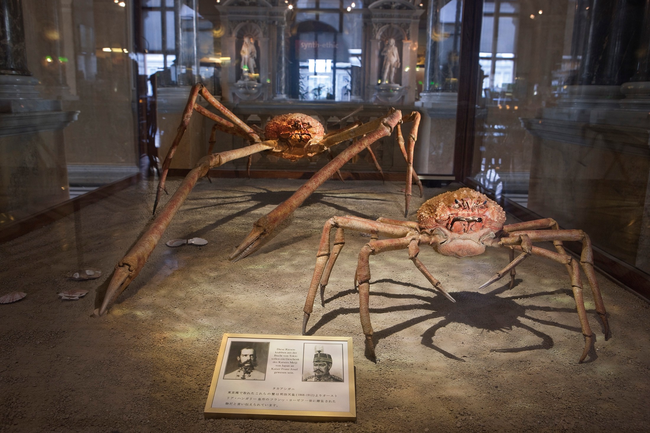 wurde. Das Seespinnenpärchen im NHM stammt aus der Bucht von Tokio und wurde 1882 nach Wien gebracht.